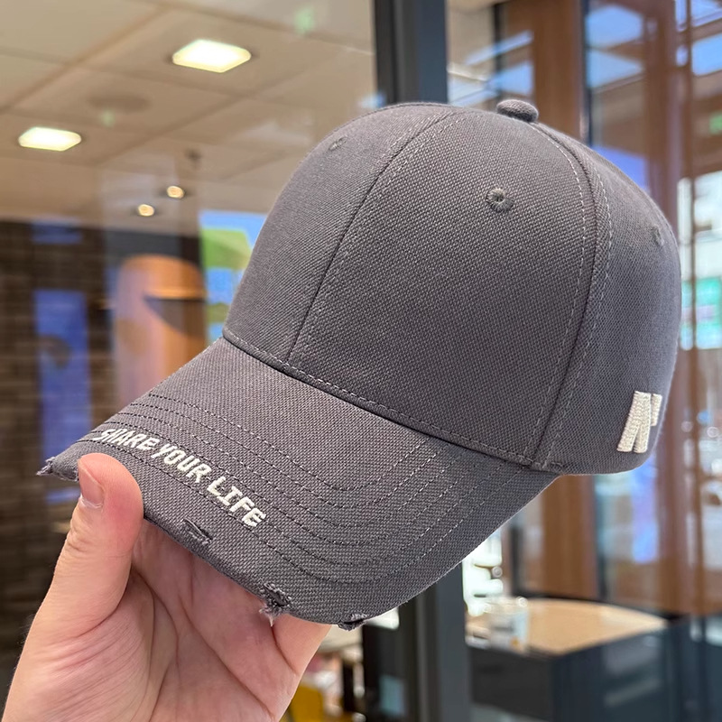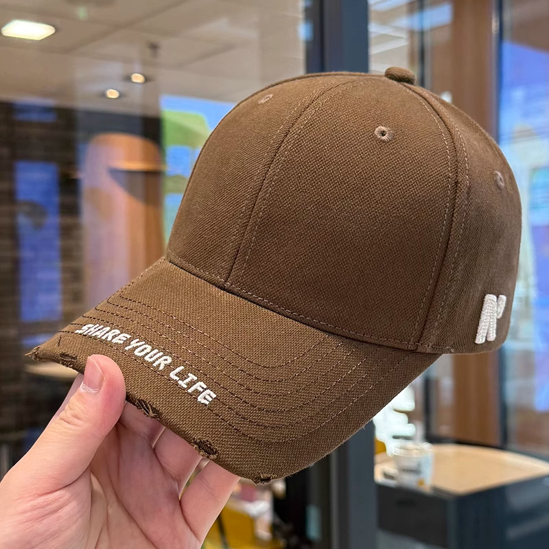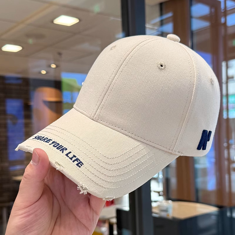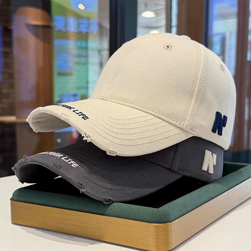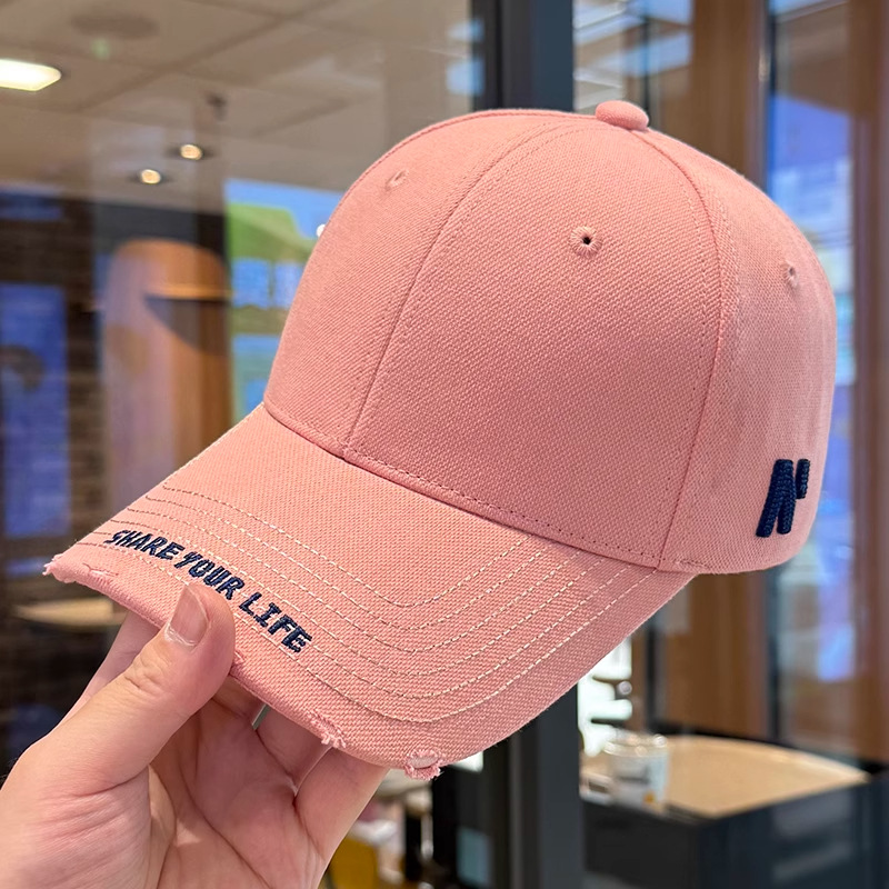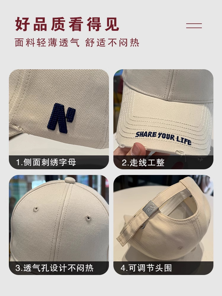 봄 여름 여성용 미국 복고풍 야구 모자, 심플하고 패셔너블한 문자 자수, 큰 머리 둘레, 남성용 작은 챙 모자스토어 가기