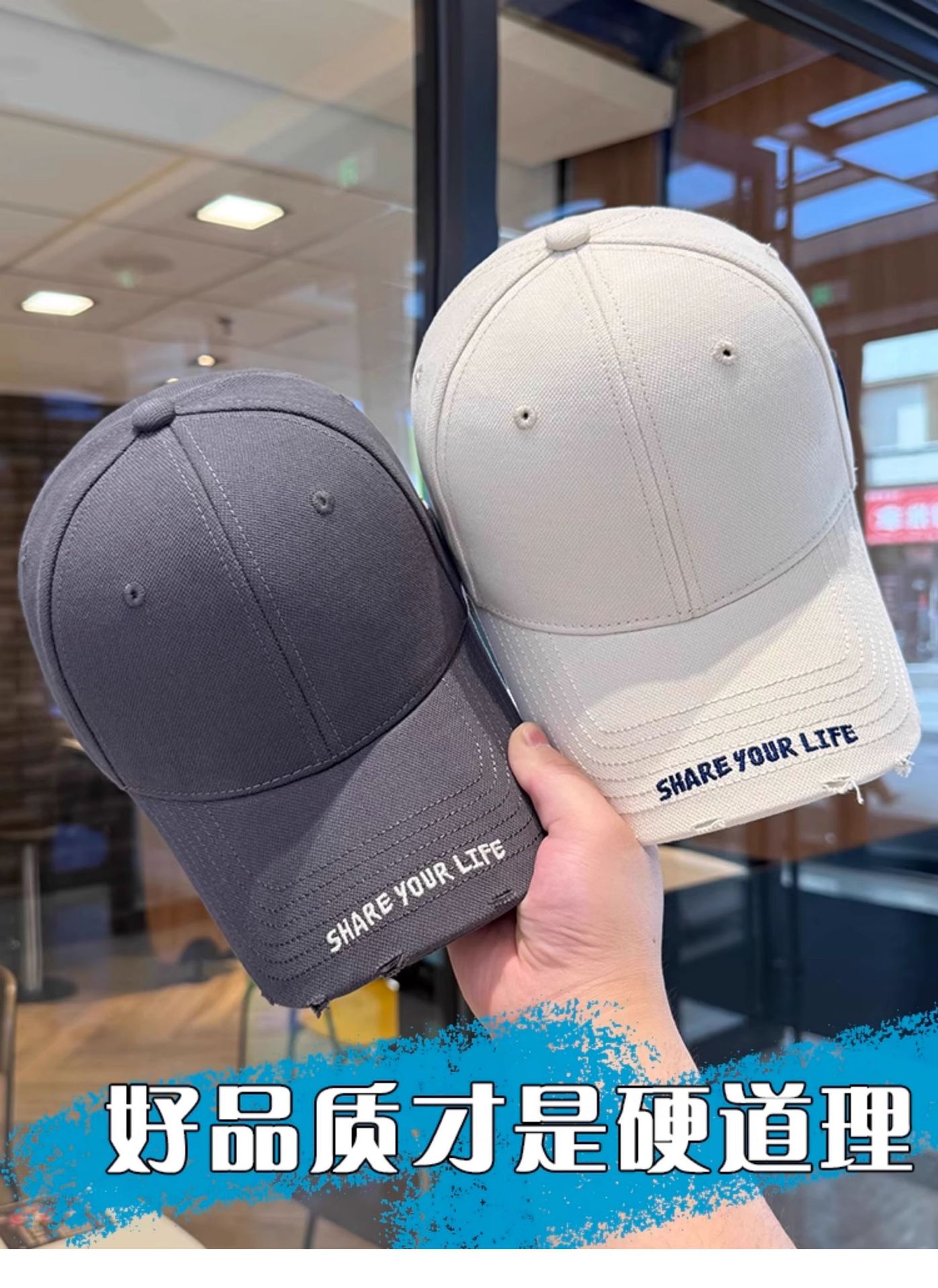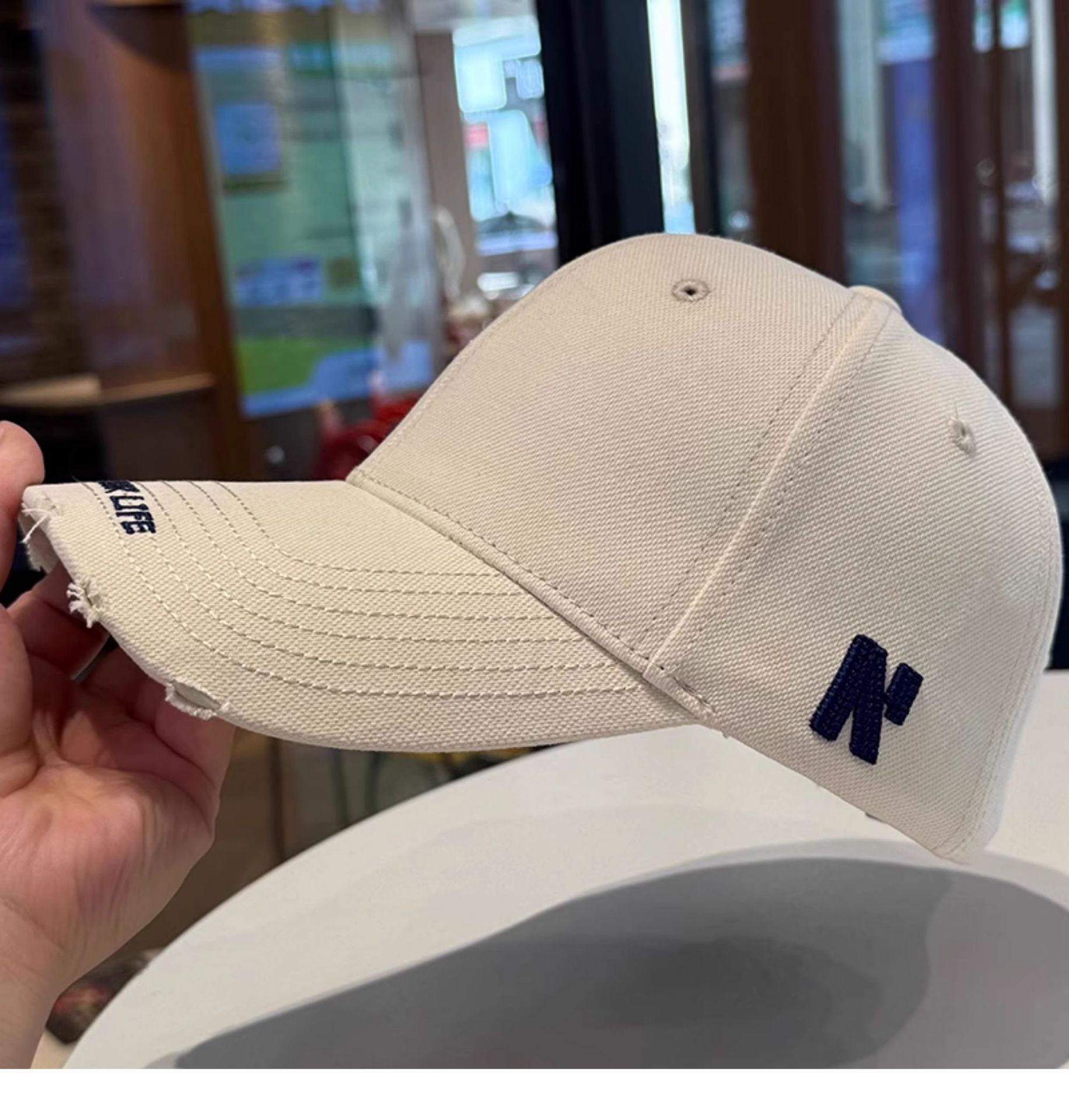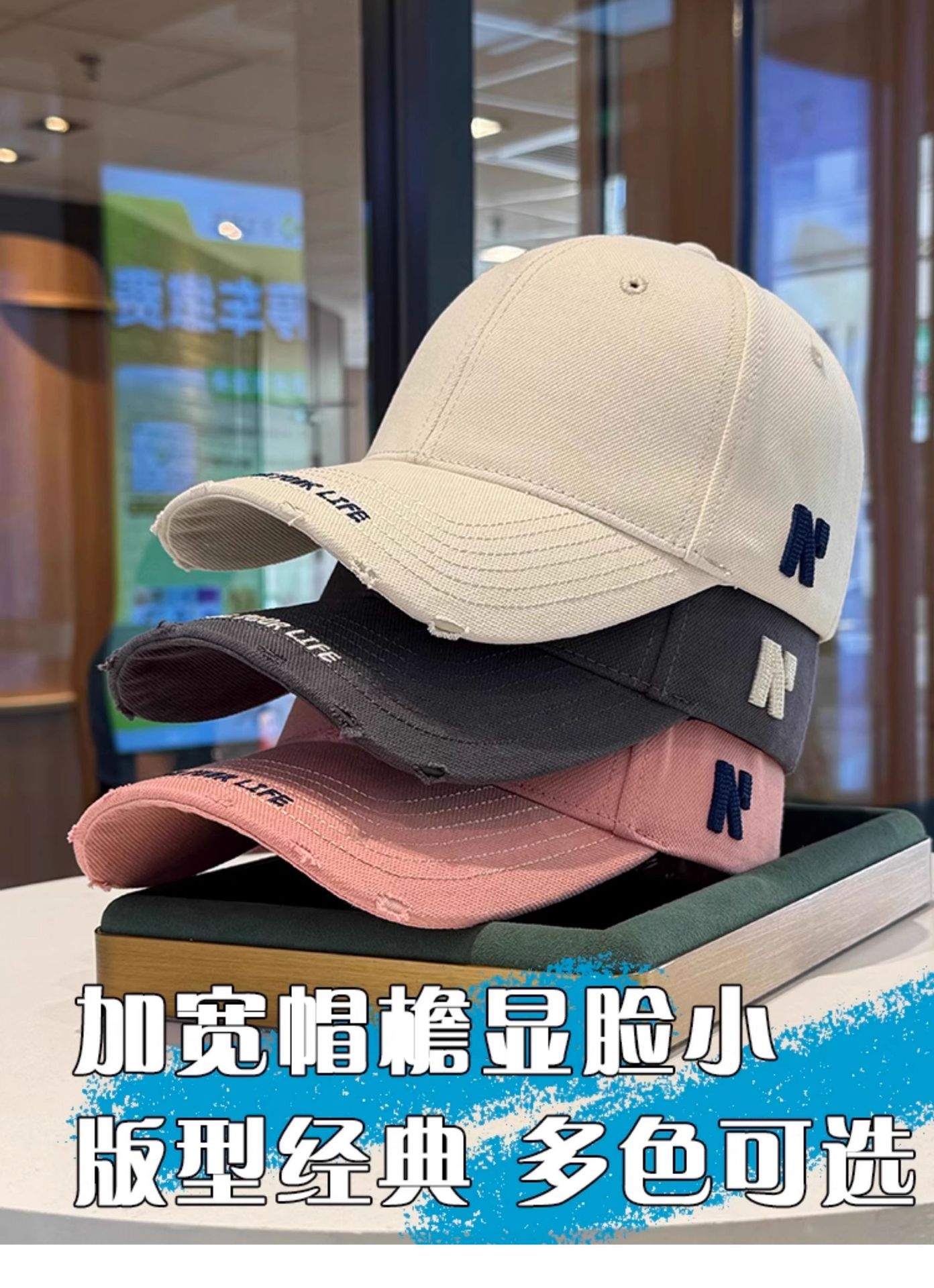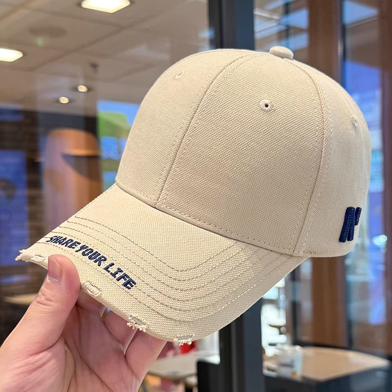 봄 여름 여성용 미국 복고풍 야구 모자, 심플하고 패셔너블한 문자 자수, 큰 머리 둘레, 남성용 작은 챙 모자스토어 가기