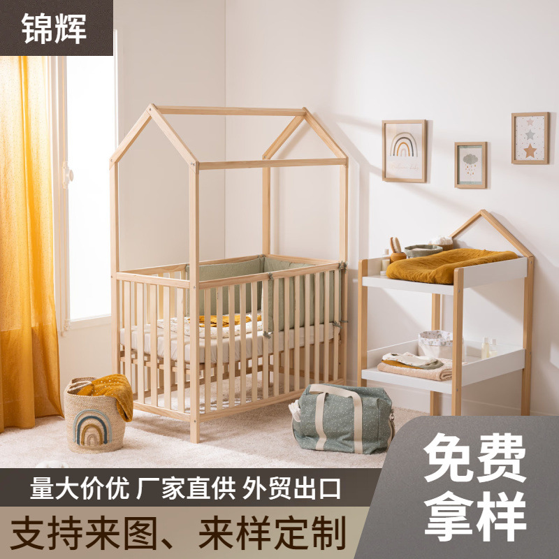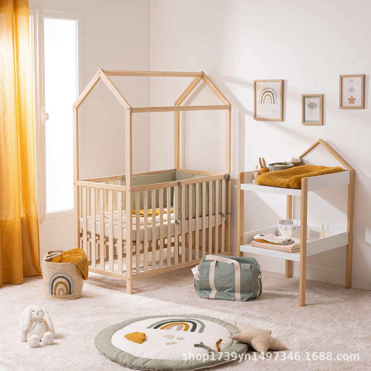 한정판 소나무 몬테소리 아기 침대 가드 레일 신생아 페인트가없는 어린이 침대 분리형 단단한 나무 유아용 침대스토어 가기