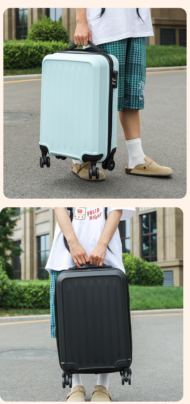 신제품 입고, 멋진 디자인의 여행가방 20inch 지퍼와 회전바퀴가 있는 대형 여행가방으로도 사용 가능하며, 기내 반입 가능한 트롤리 가방스토어 가기