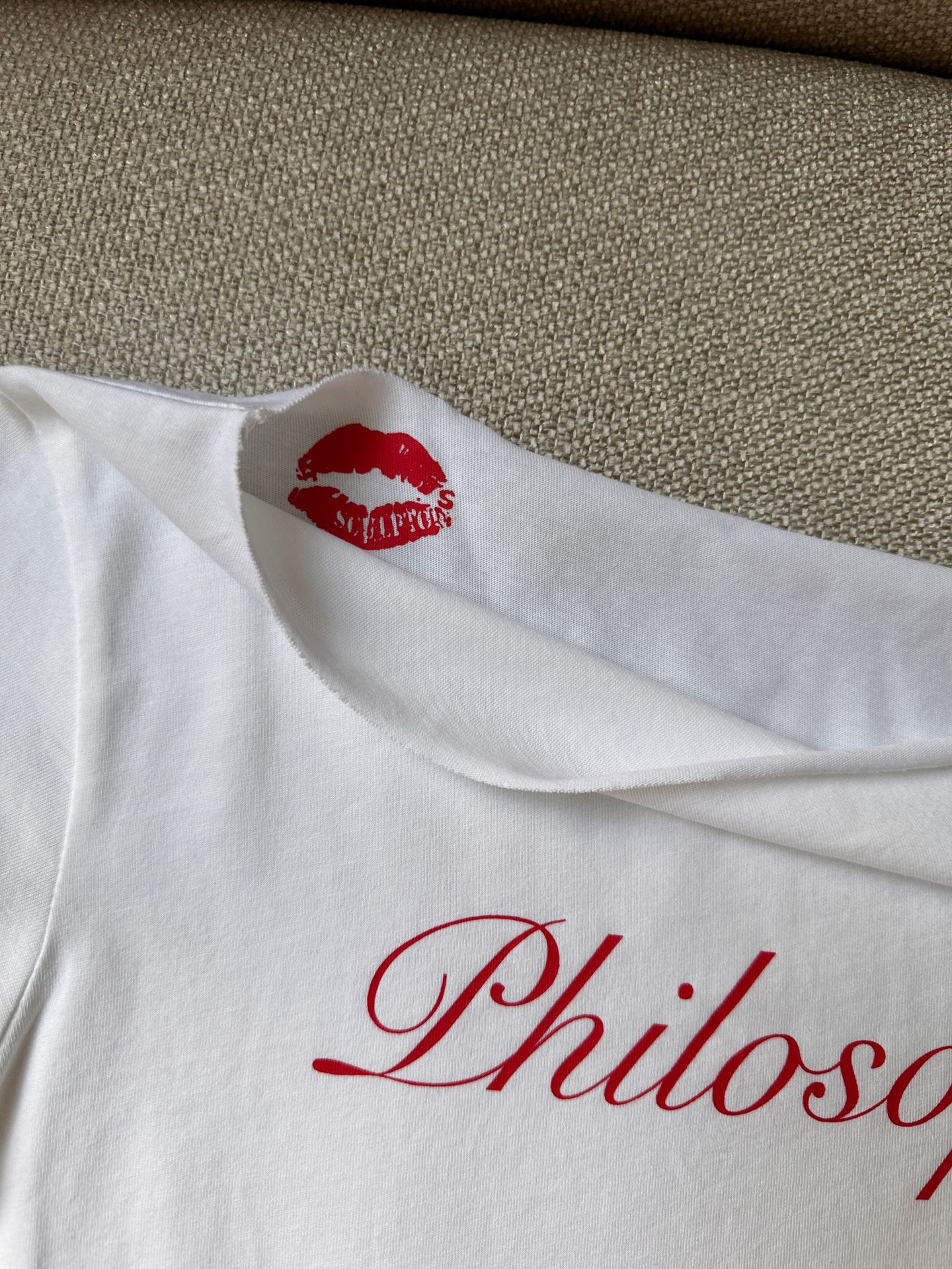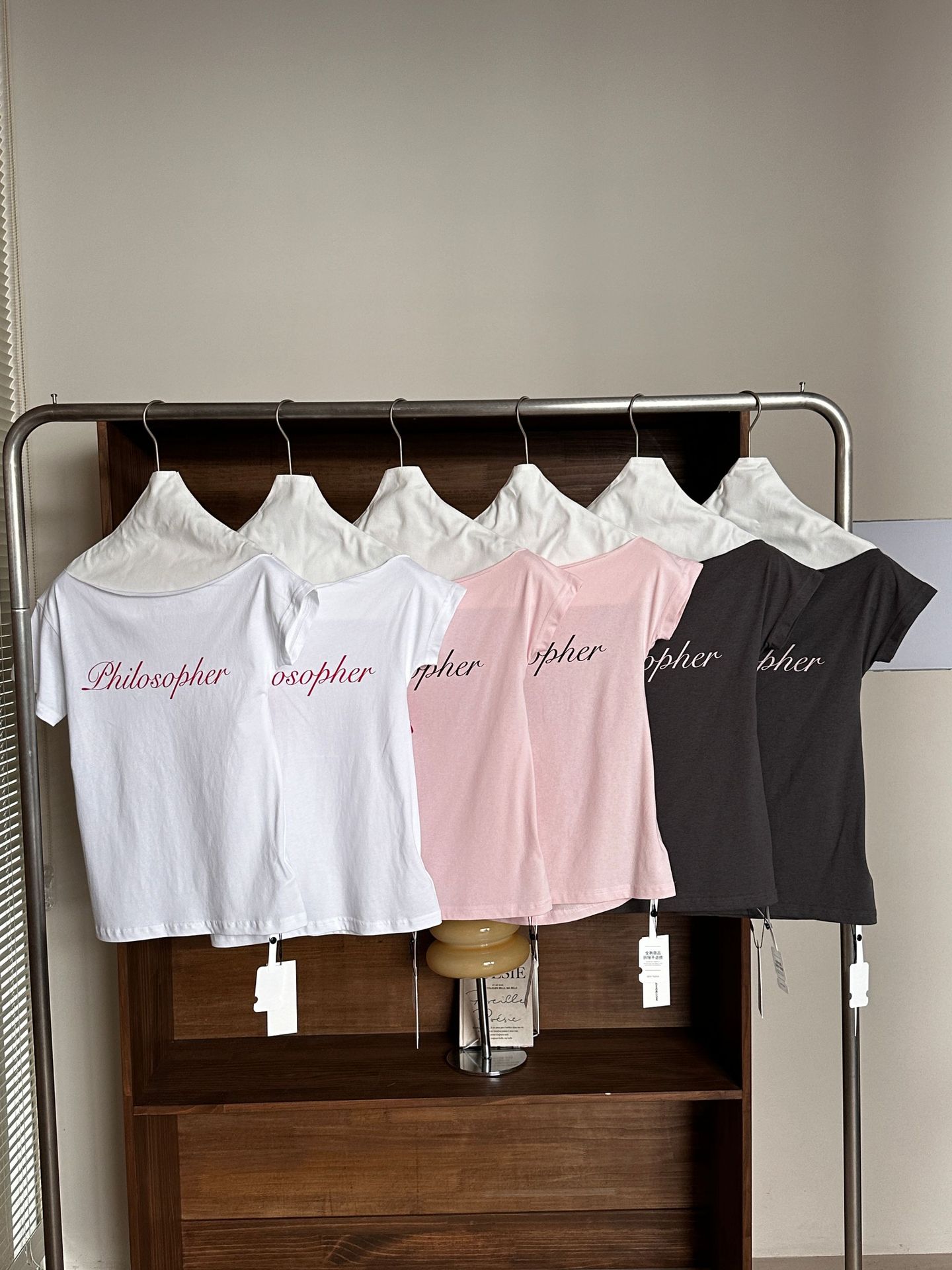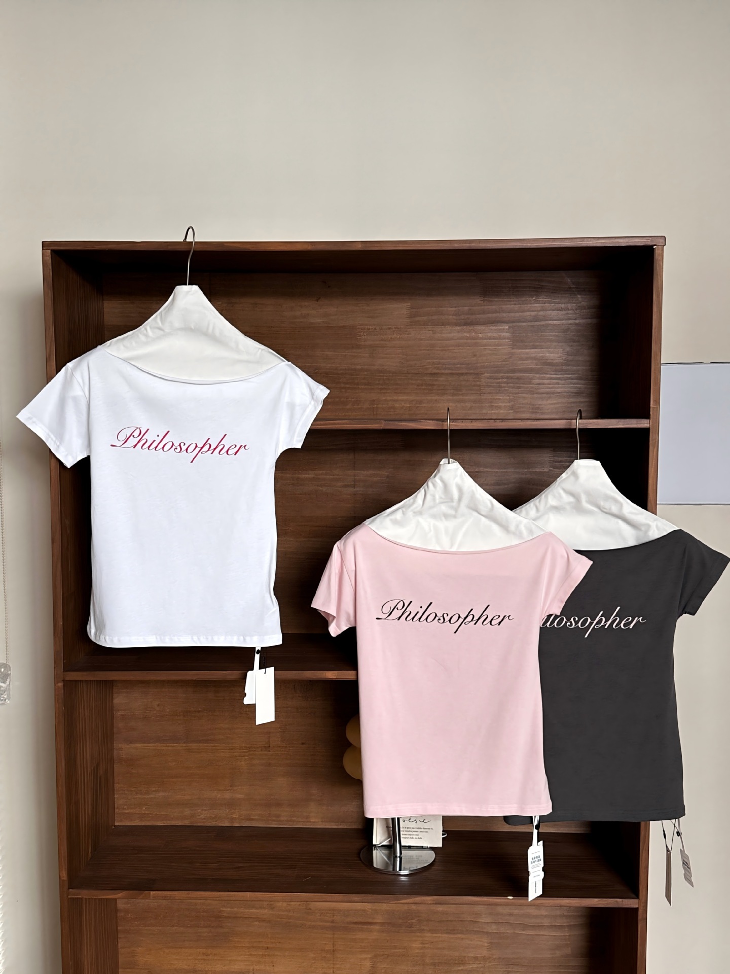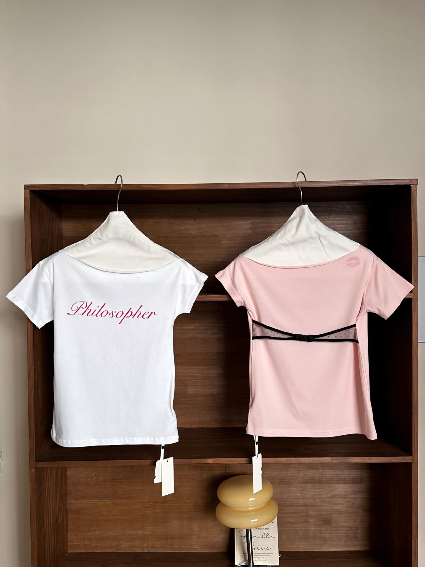 sculptor 슬래시 넥 오프 숄더 핫 걸 벨트 쇼트 티셔츠 2025 여름 여성용 루즈 프린트 반소매 탑스토어 가기