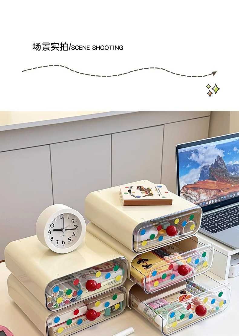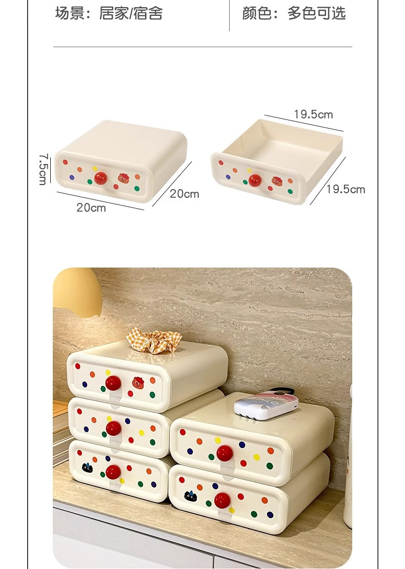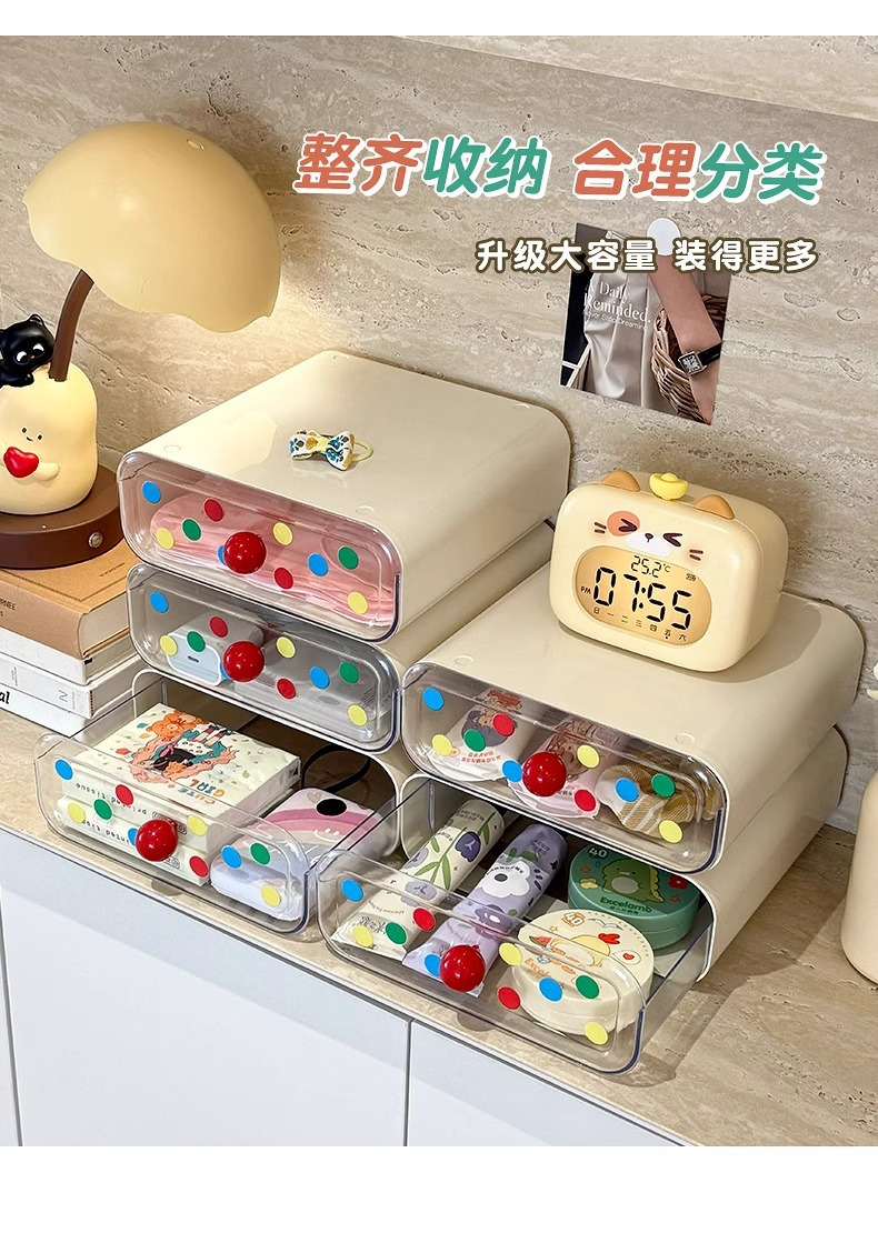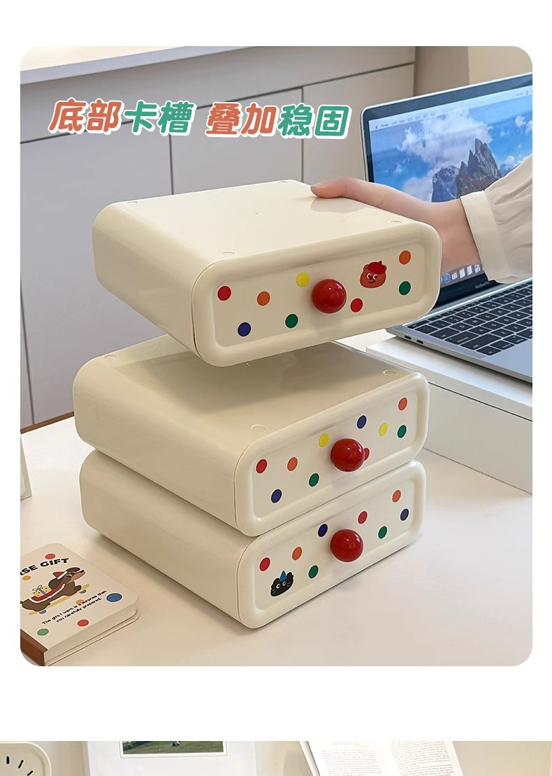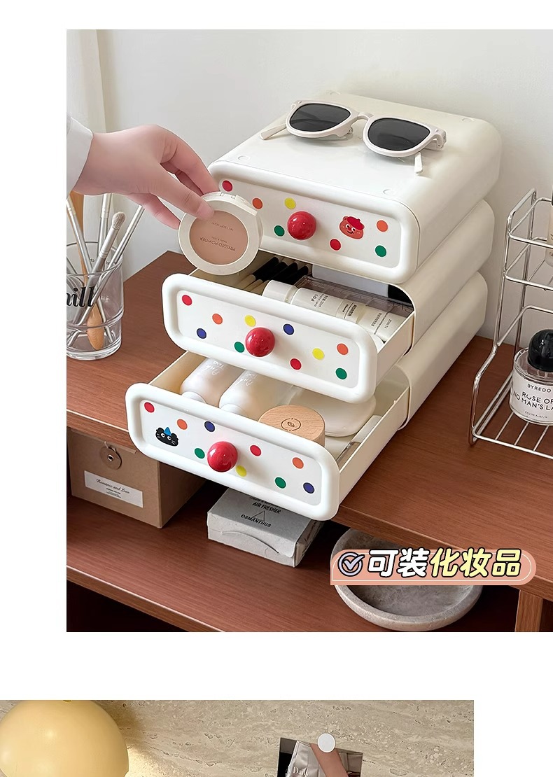 크림 데스크탑 수납함, 귀여운 서랍, 현관 수납함, 대용량 사무실 기숙사 책상 수납함스토어 가기