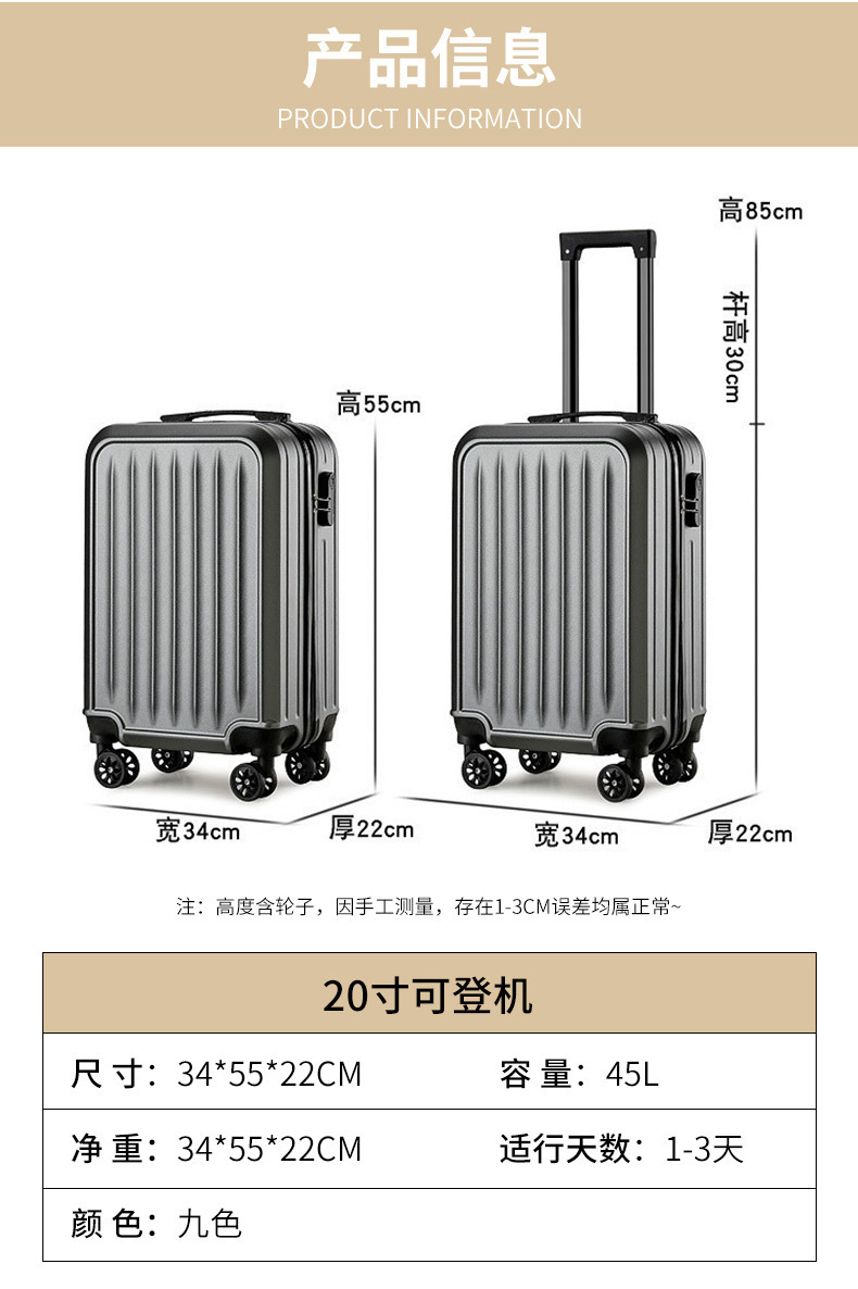 간단한 수하물 탑승 케이스, 크로스보더 패션, 대용량 비밀번호 잠금 트롤리 케이스, 범용 휠, 저소음 및 내구성이 뛰어난 여행용 케이스