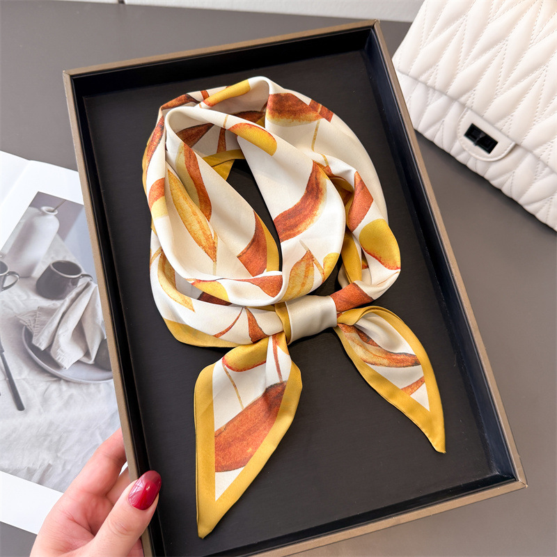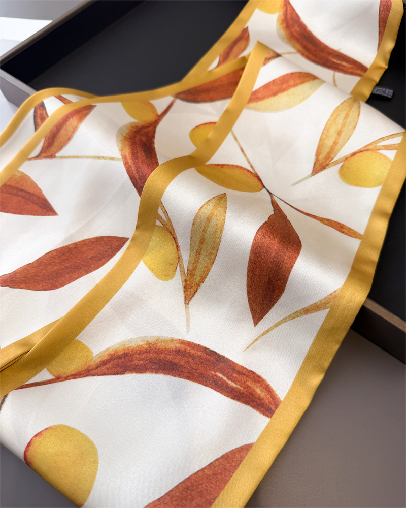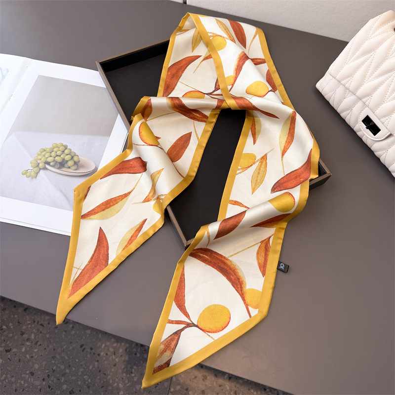 봄 여름 신작 과일 더블 레이어 스카프 장식 실크 스카프 통근 봄 여름 베벨 헤어 스카프 다용도 얇은 리본