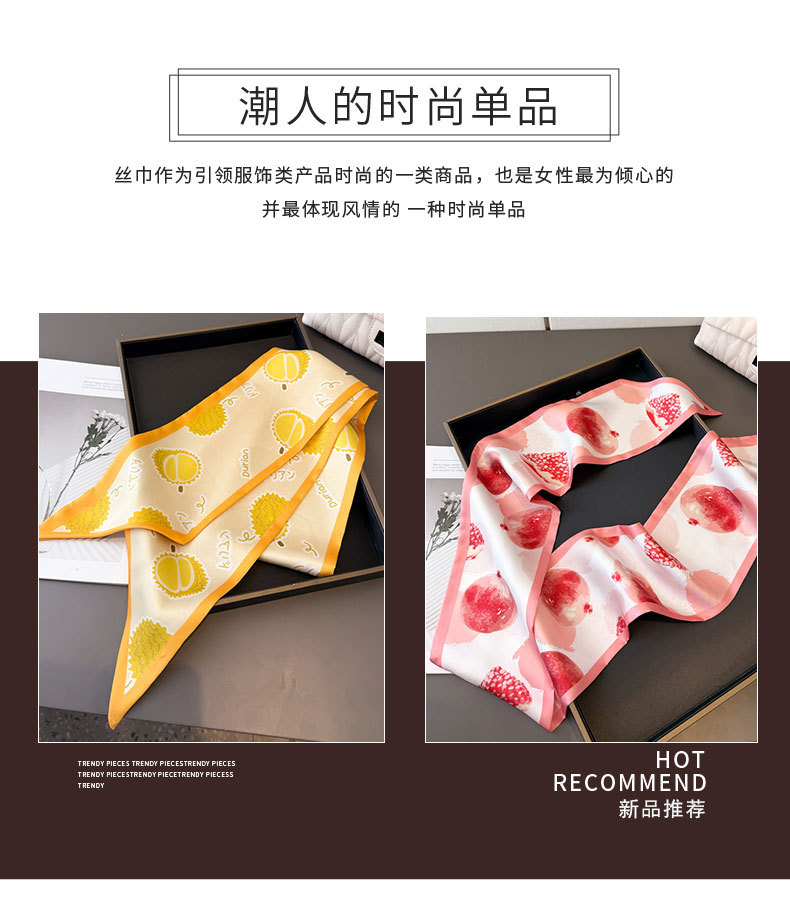 봄 여름 신작 과일 더블 레이어 스카프 장식 실크 스카프 통근 봄 여름 베벨 헤어 스카프 다용도 얇은 리본스토어 가기