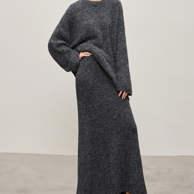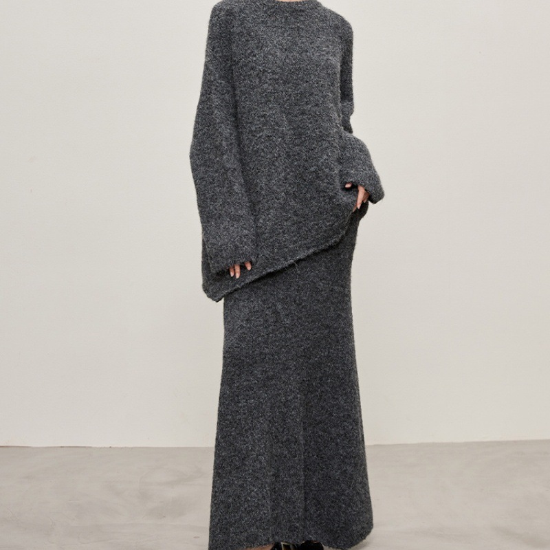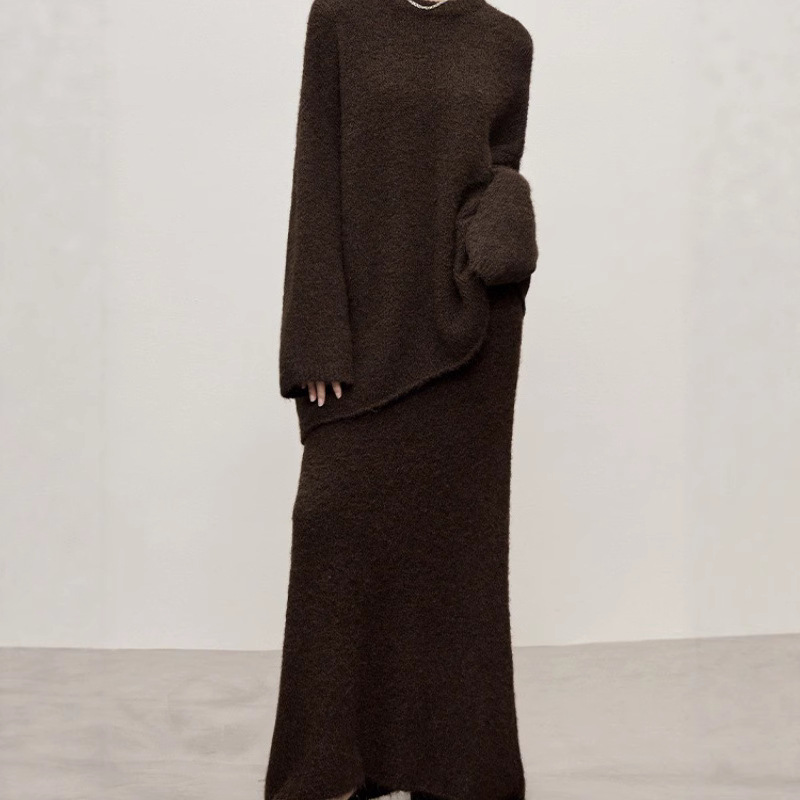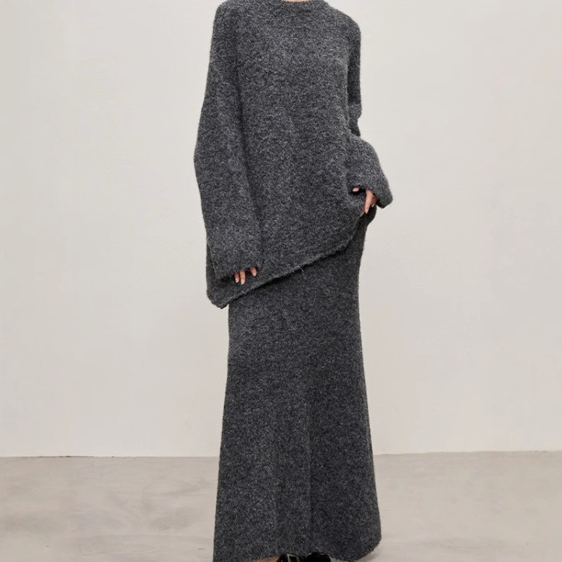 패셔너블하고 다재다능한 2025 봄, 가을 여성을 위한 새로운 스웨터 스커트 슈트, 여성용 대형 루즈한 게으른 스타일 투피스 슈트스토어 가기
