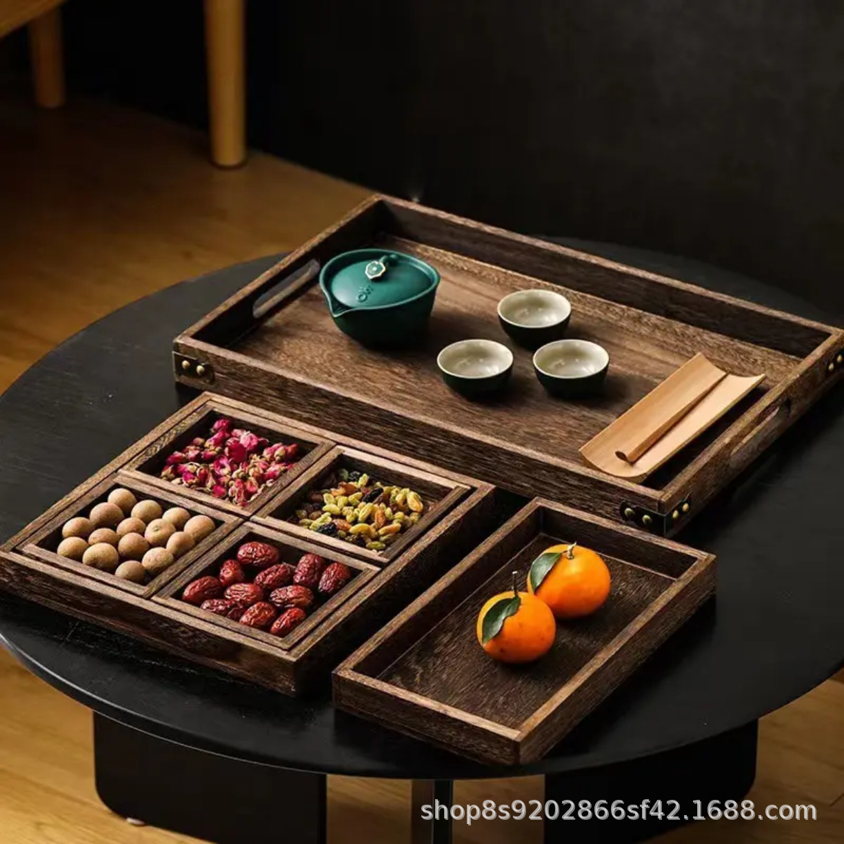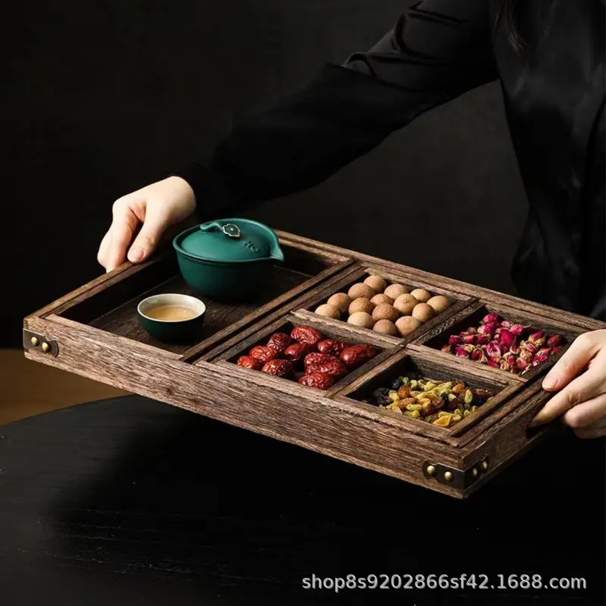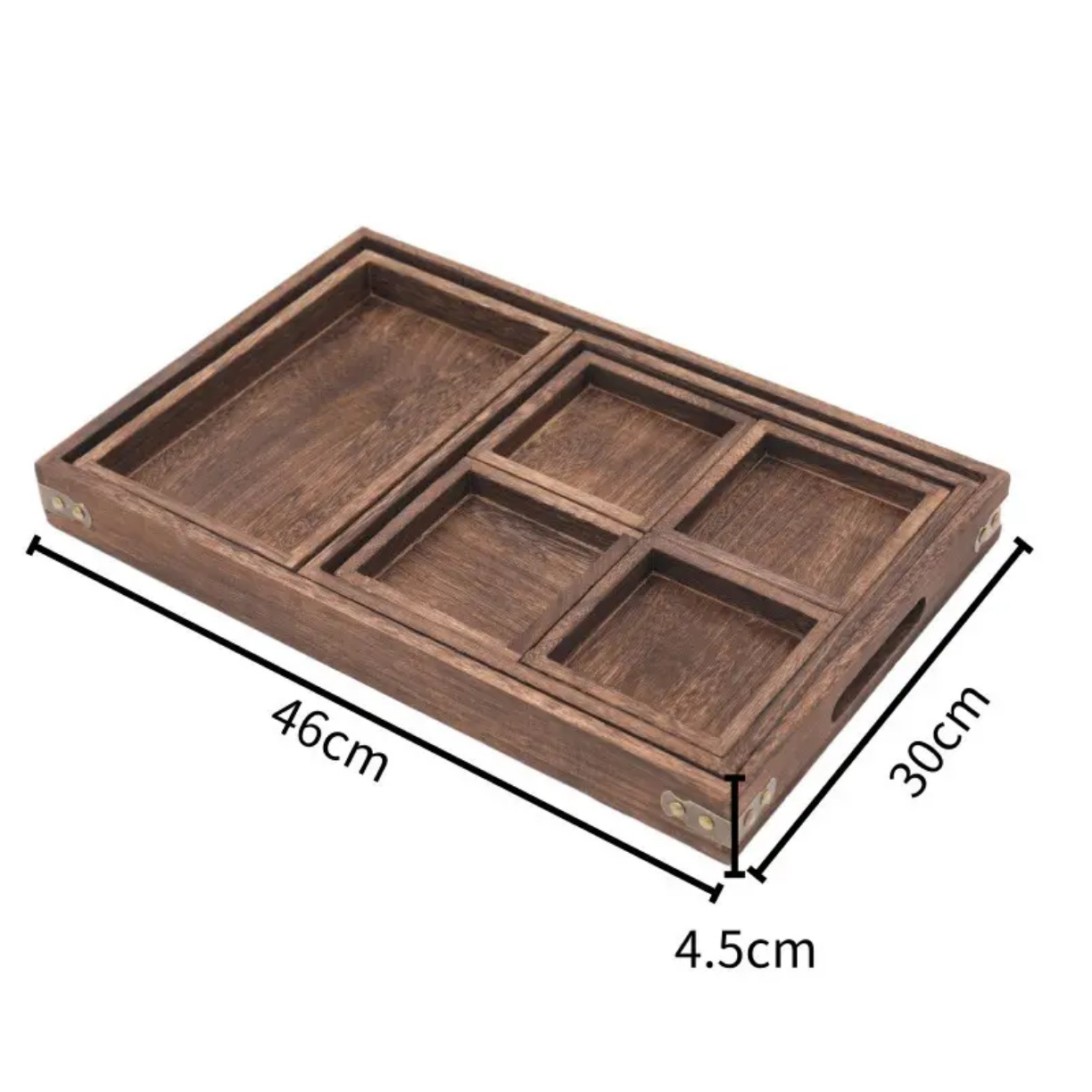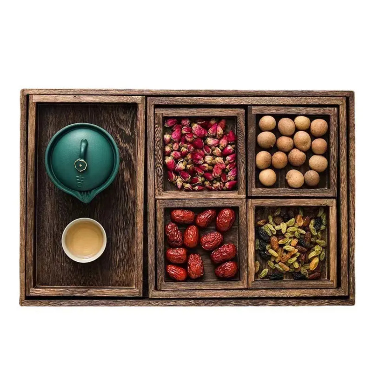 불에 차를 끓일 수 있는 나무 멀티 티 트레이, 7피스 조합 트레이, 원목 건과일 스낵 보관 트레이