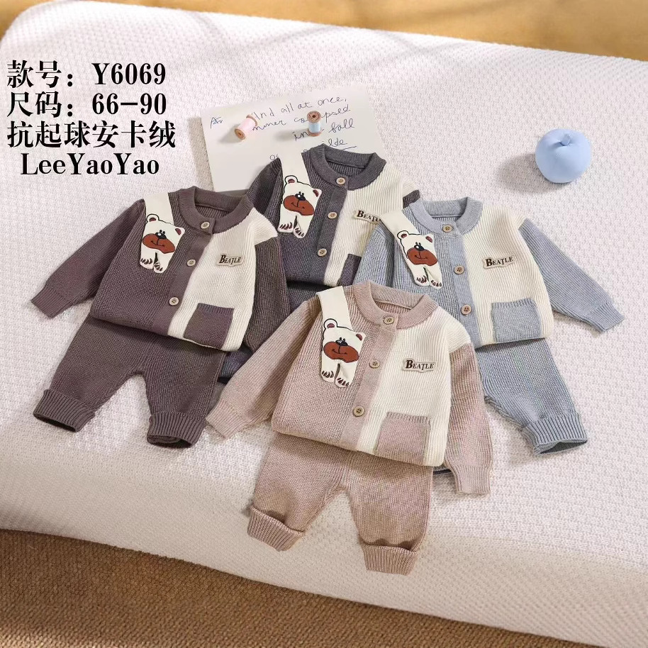 아동 의류 소녀 봄 가을 겨울 니트 스웨터 세트 편지 패턴 플레어 바지 패션 유아 캐주얼 안티 필링스토어 가기