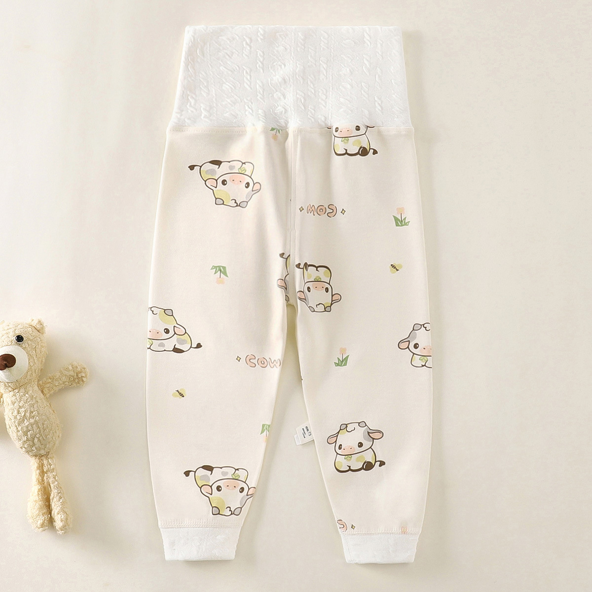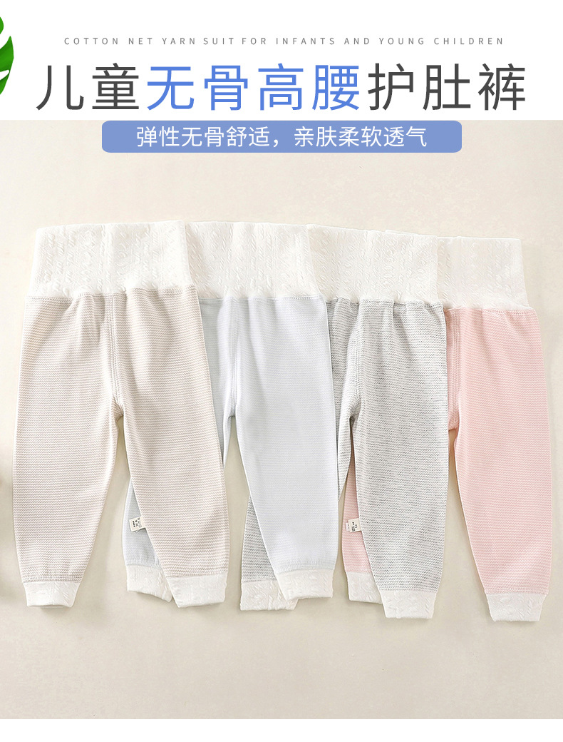 아동용 뼈없는 탄성 개방형 하이 웨이스트 배꼽 보호 바지 베이비 클래스 A 순면 낙하 방지 및 흔적없는 이중 목적 바닥