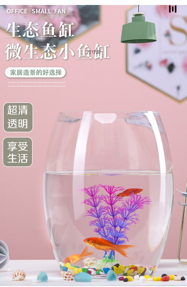 데스크탑 수조 생태 원형 유리 금붕어 수조 거북이 수조 미니 소형 조경 가정용 수족관 공급망