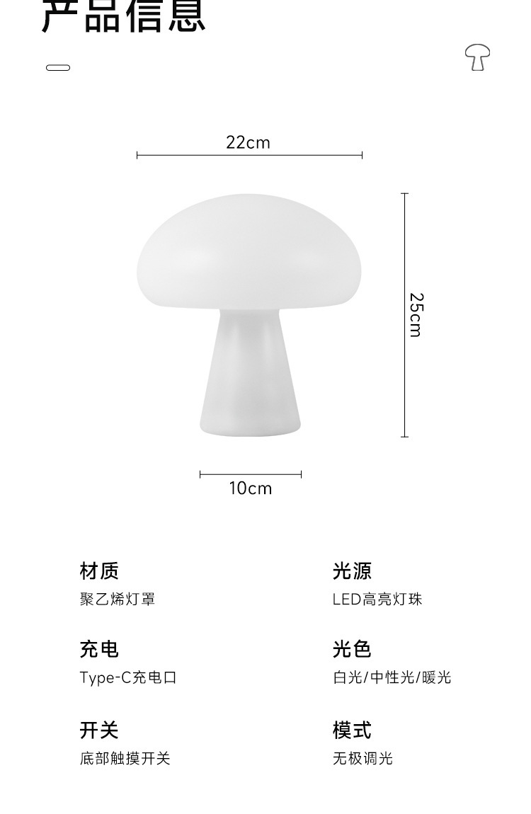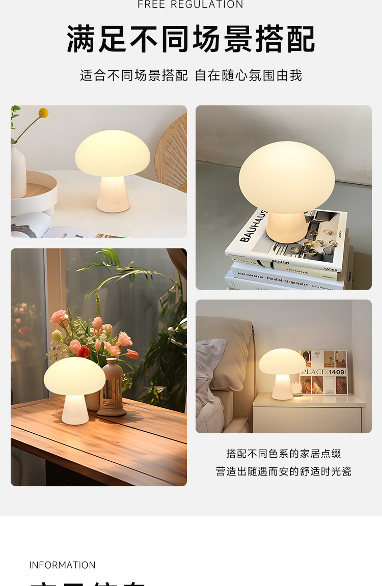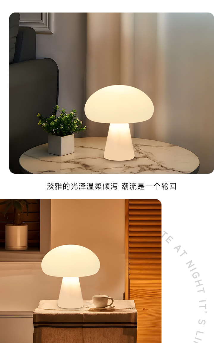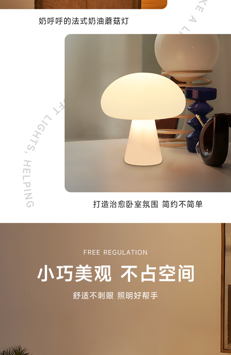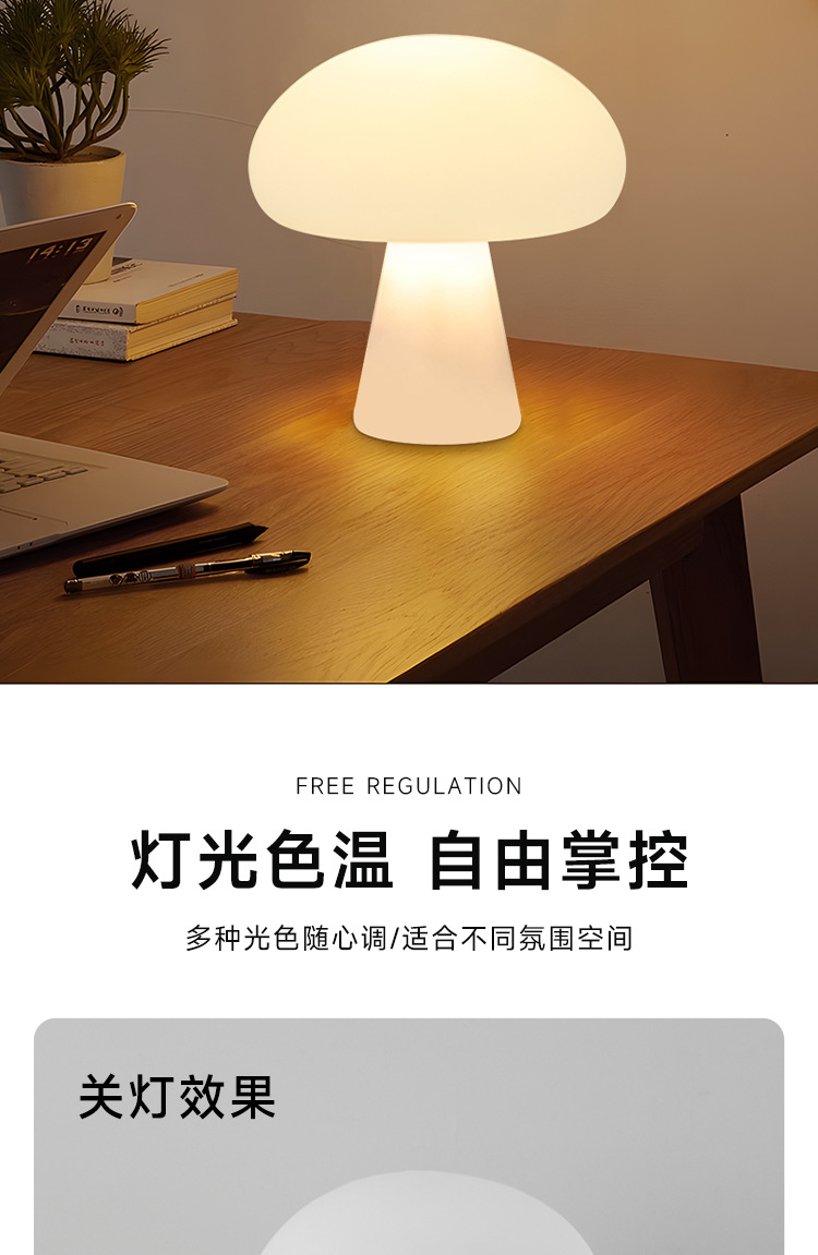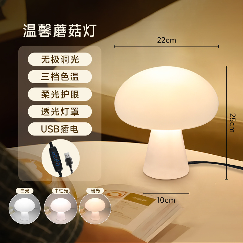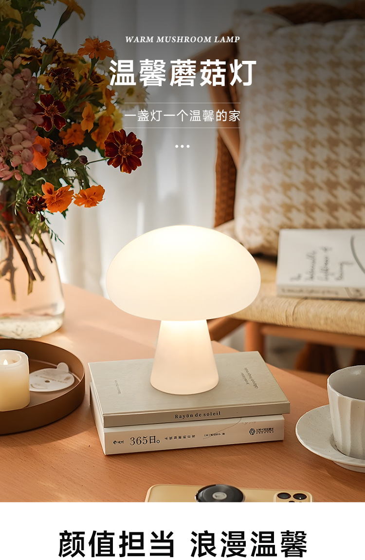 국경 간 덴마크 크림 스타일 버섯 테이블 램프 충전식 거실 연구 침실 머리맡 장식 분위기 램프 야간 조명스토어 가기