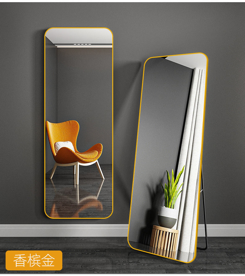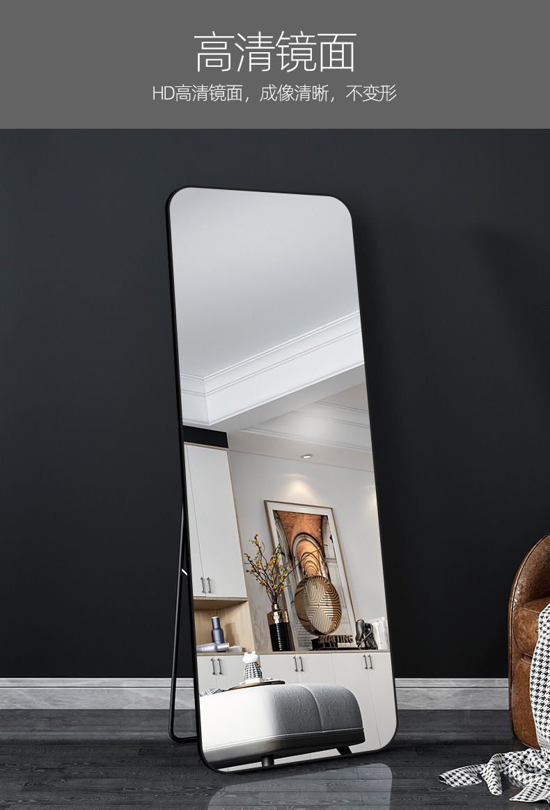 전신 바닥 거울 인터넷 연예인 간단한 소녀 둥근 모서리 가정용 피팅 거울 수평 드레싱 학생 기숙사 의류 매장