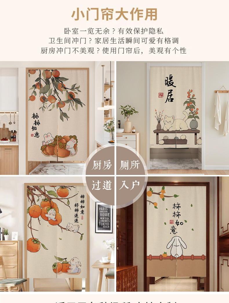 현관문 커튼, 새로운 중국식 펀치 없는 거실 통로 칸막이 커튼, 침실 룸 홈 면 및 린넨 하프 커튼 차단 커튼스토어 가기