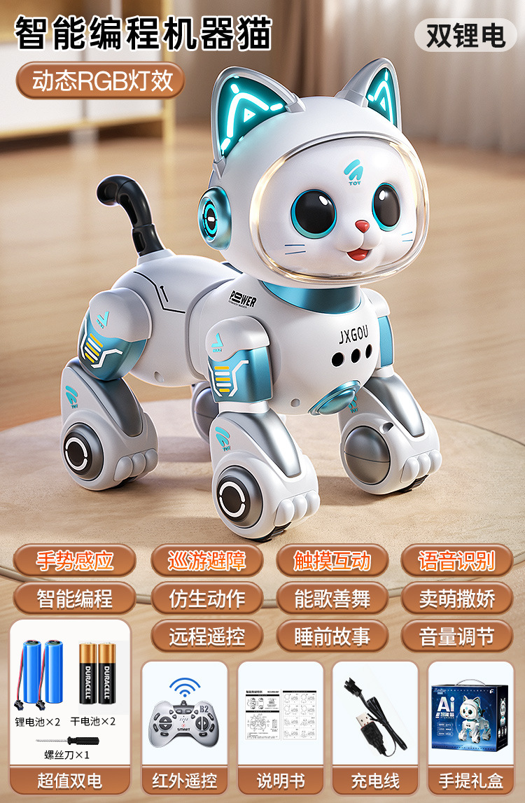 스마트 로봇 고양이 어린이 장난감 교육 1-3 소년 아기 소녀 전자 원격 제어 걷기 로봇 6스토어 가기