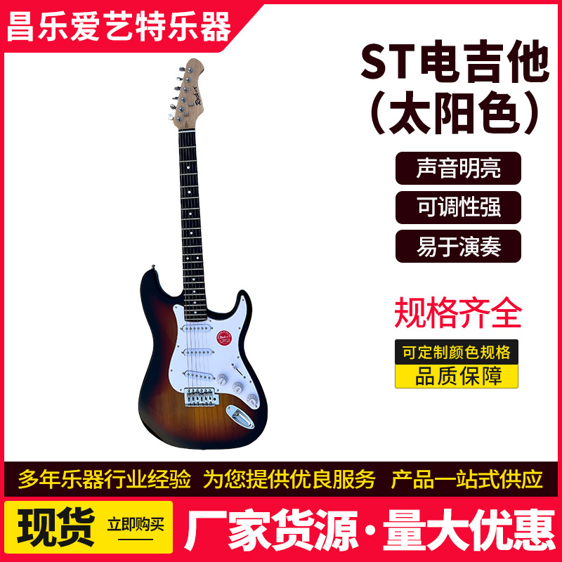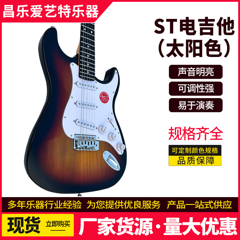제조 업체 도매 st 일렉트릭 기타 태양 색상 록 악기 도매 초보자 보급형 단단한 나무 싱글 및 더블 일렉트릭 기타