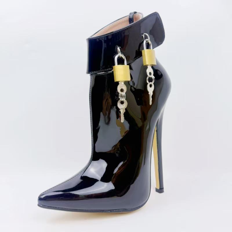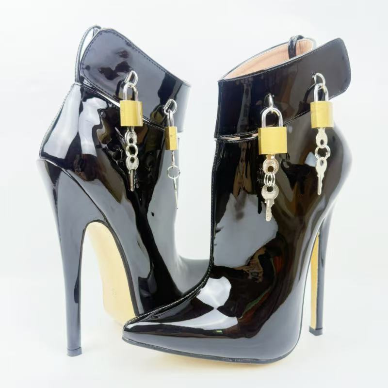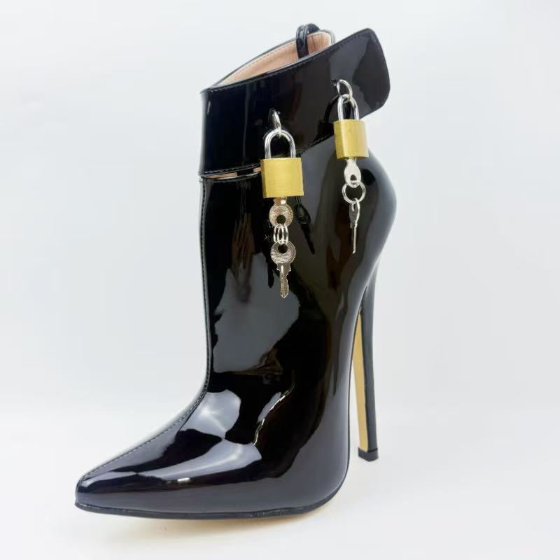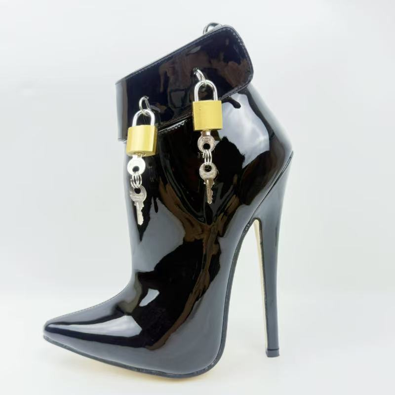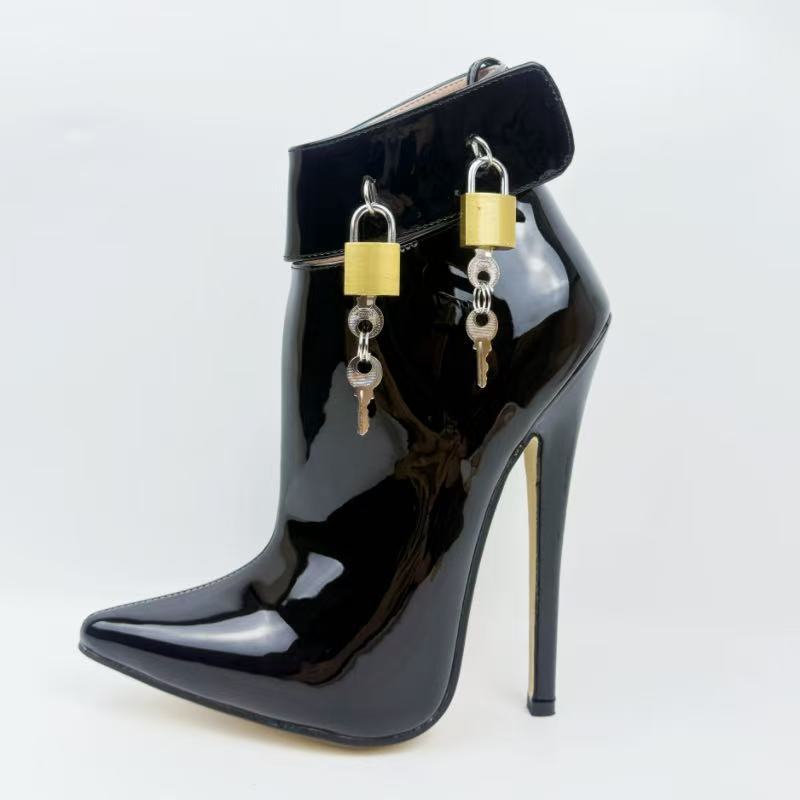 18cm 플러스 사이즈 포인티드 토 하이힐 레이스업 잠금 퀸 유럽과 미국의 섹시한 발 애호가 부츠 유럽과 미국의 하이힐