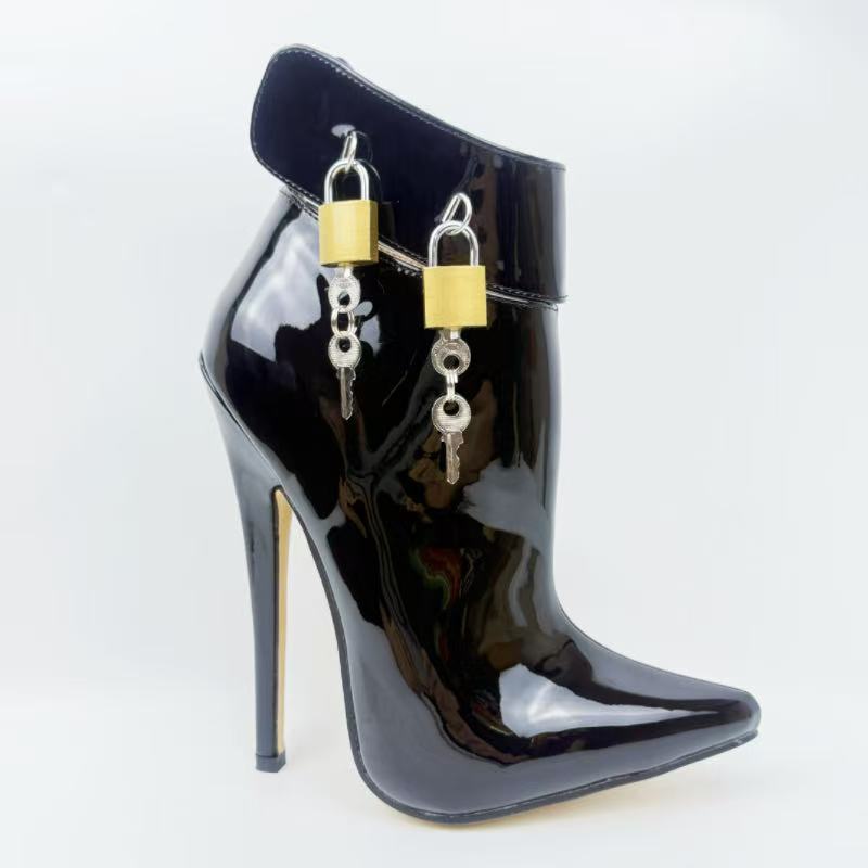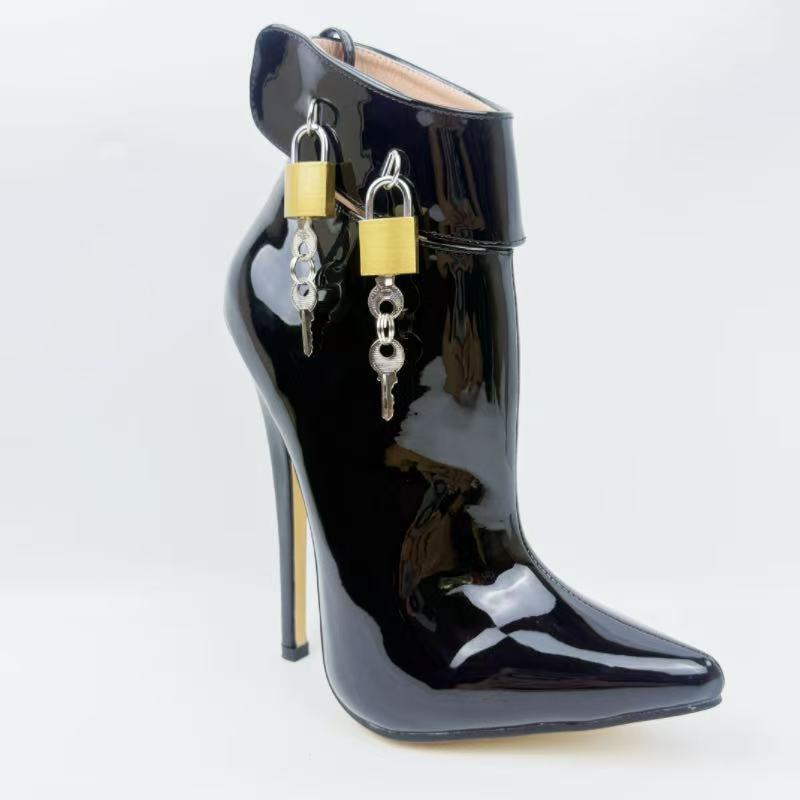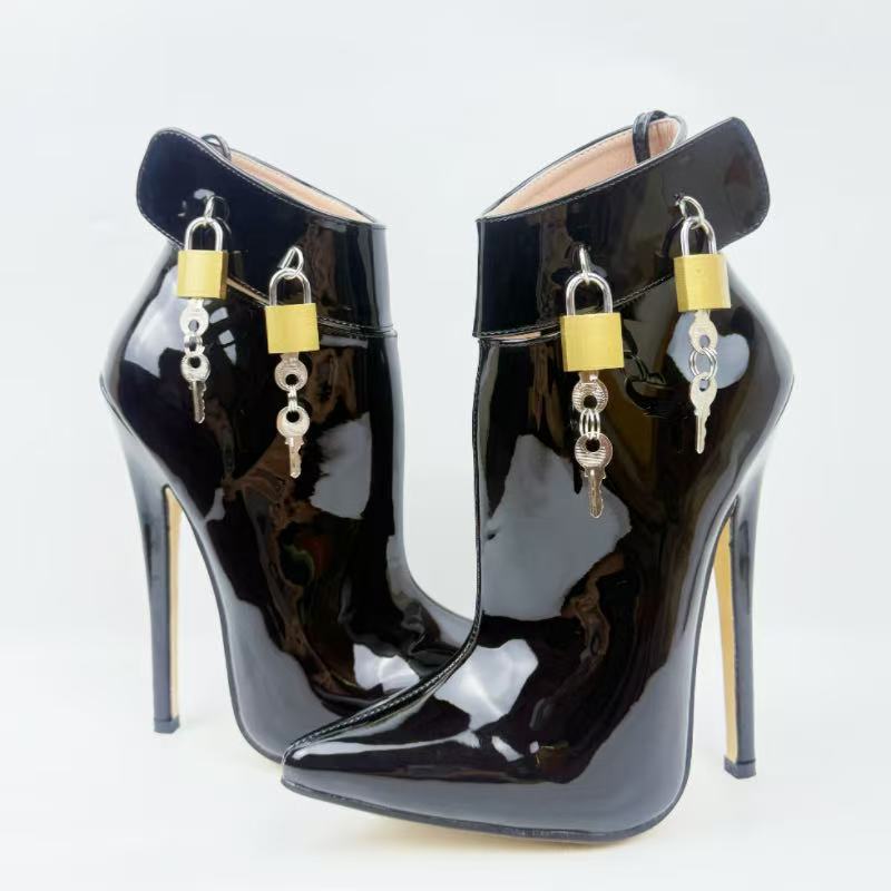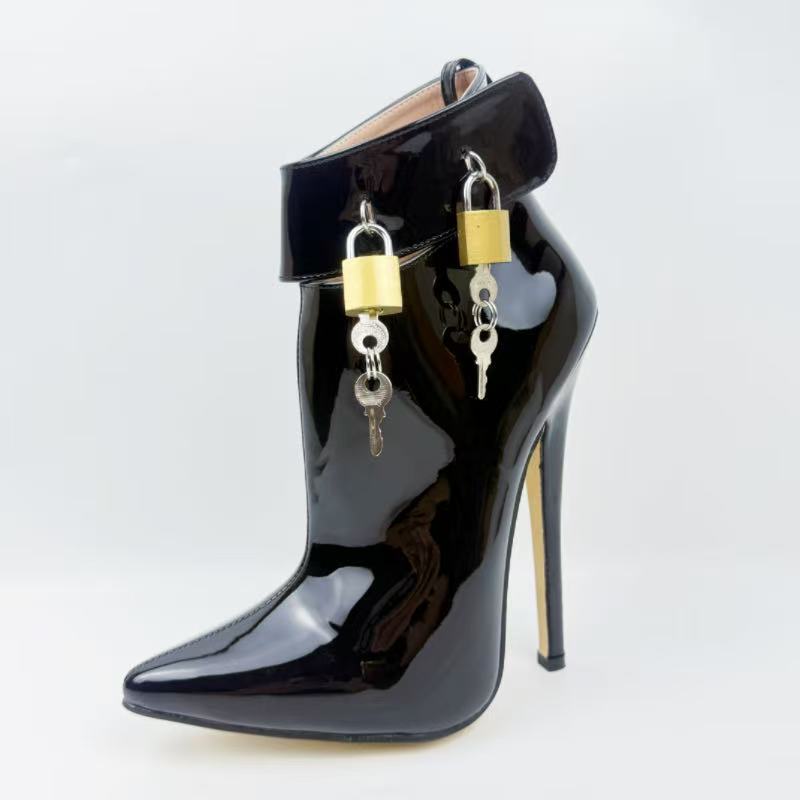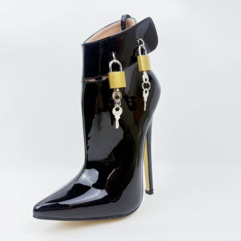 18cm 플러스 사이즈 포인티드 토 하이힐 레이스업 잠금 퀸 유럽과 미국의 섹시한 발 애호가 부츠 유럽과 미국의 하이힐