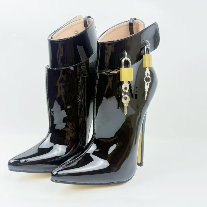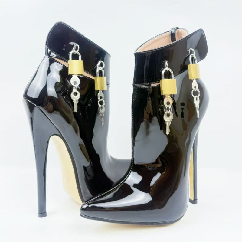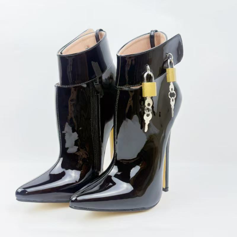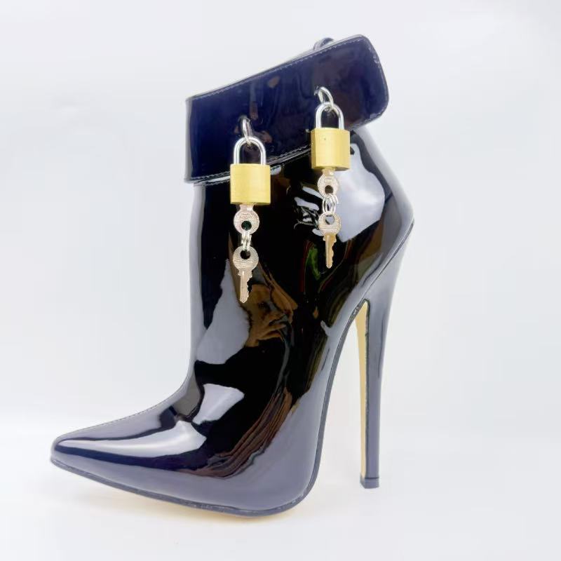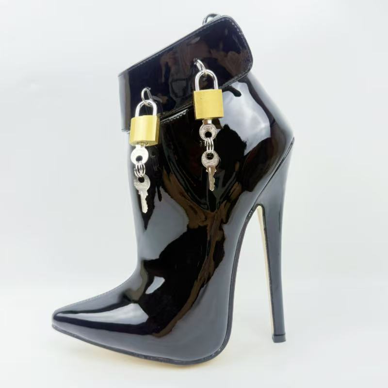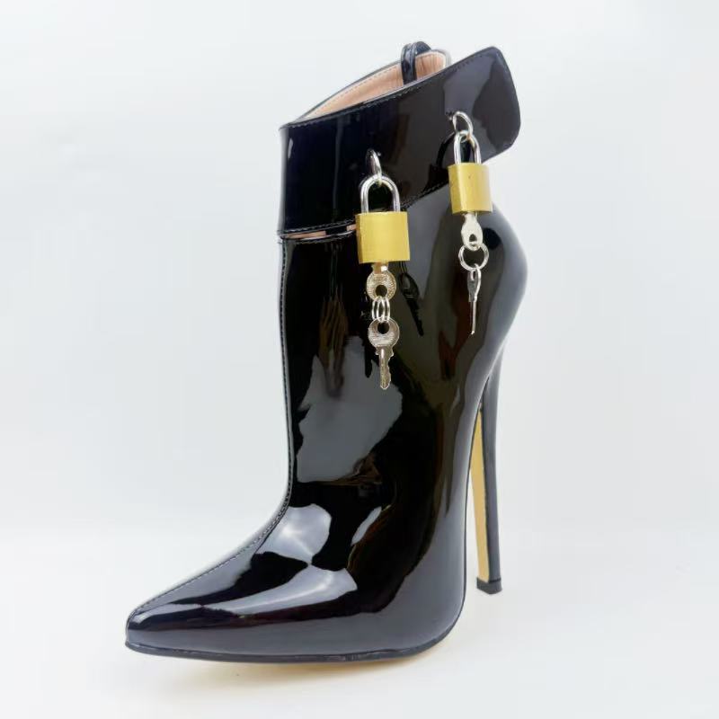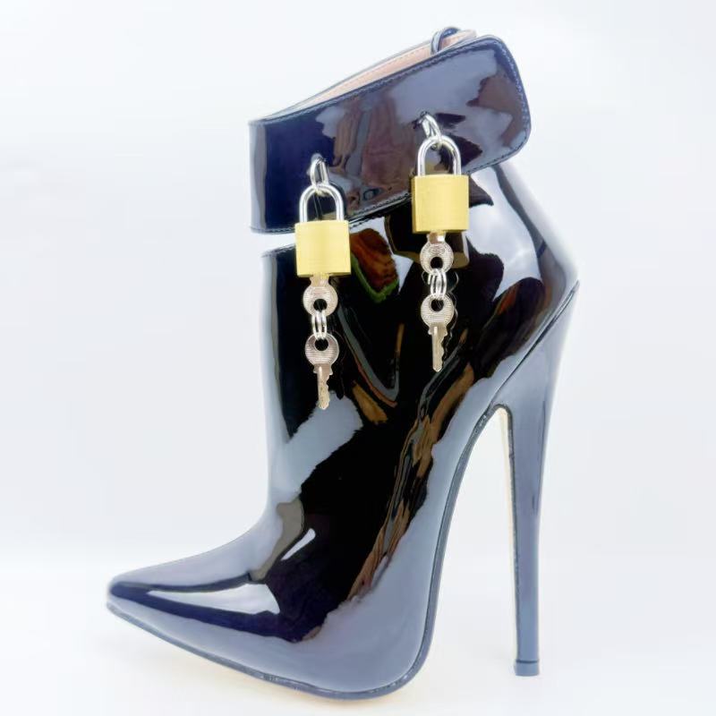 18cm 플러스 사이즈 포인티드 토 하이힐 레이스업 잠금 퀸 유럽과 미국의 섹시한 발 애호가 부츠 유럽과 미국의 하이힐스토어 가기