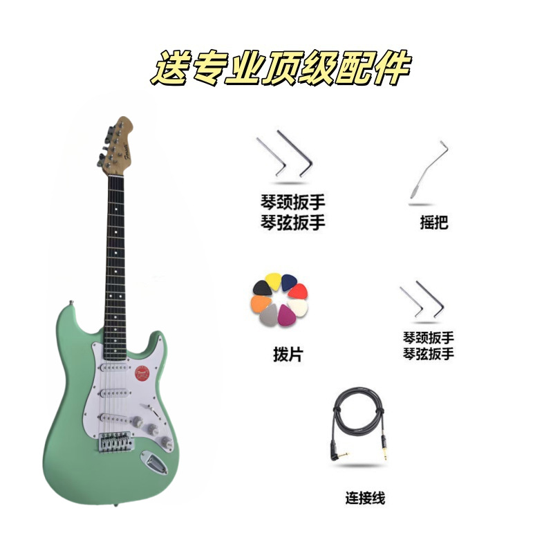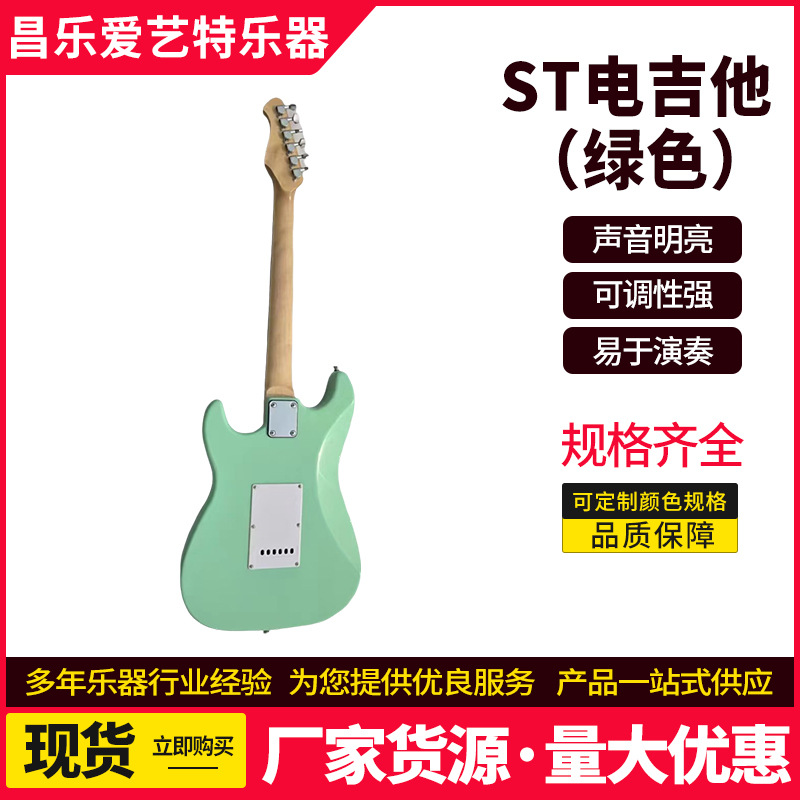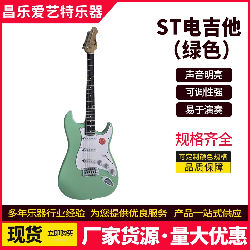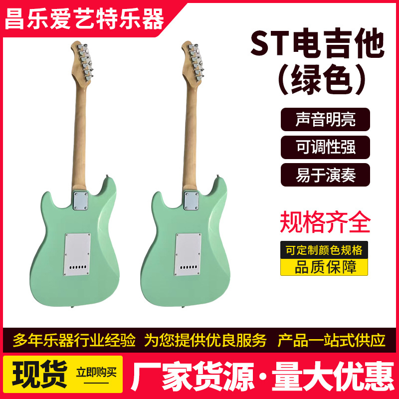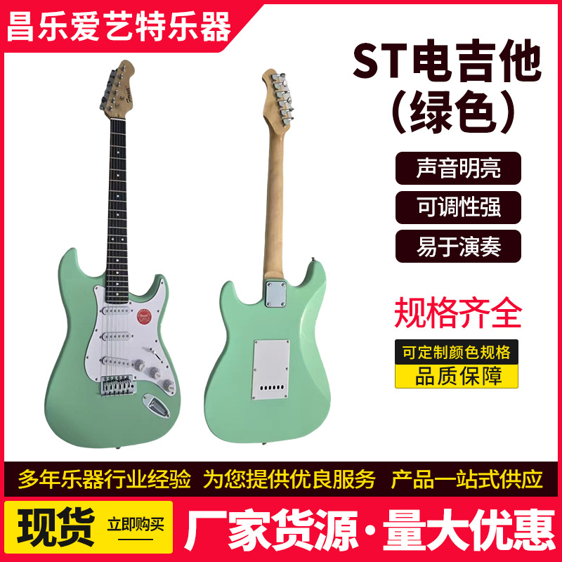 제조업체 도매 st 일렉트릭 기타 그린 록 악기 초보자용 입문용 원목 싱글/더블 크로스보더 인기 기타스토어 가기