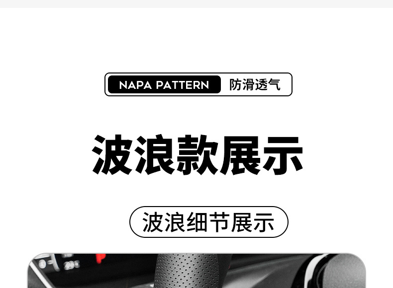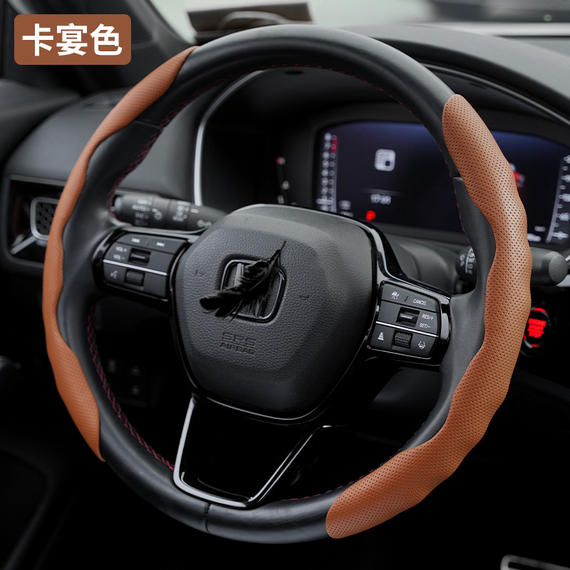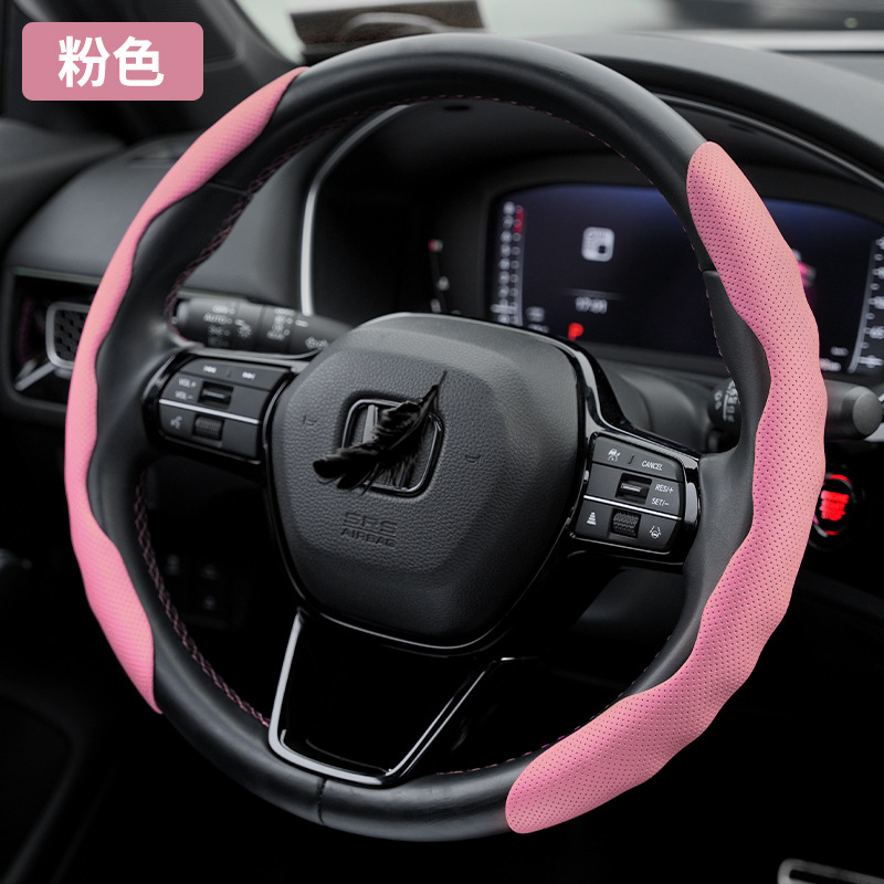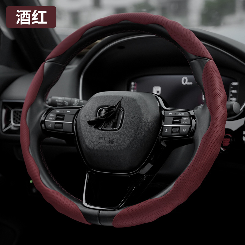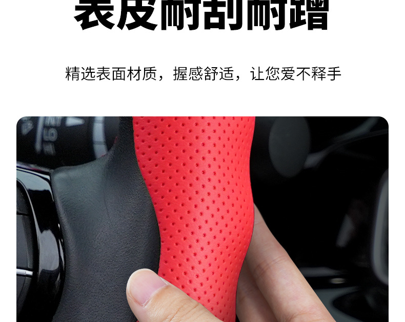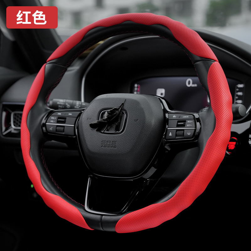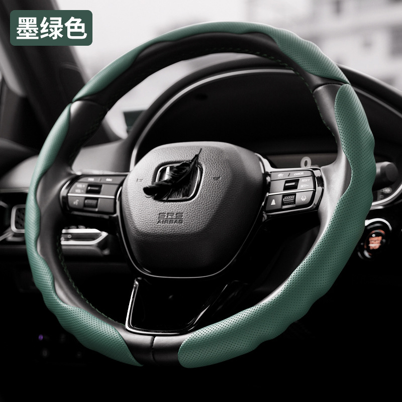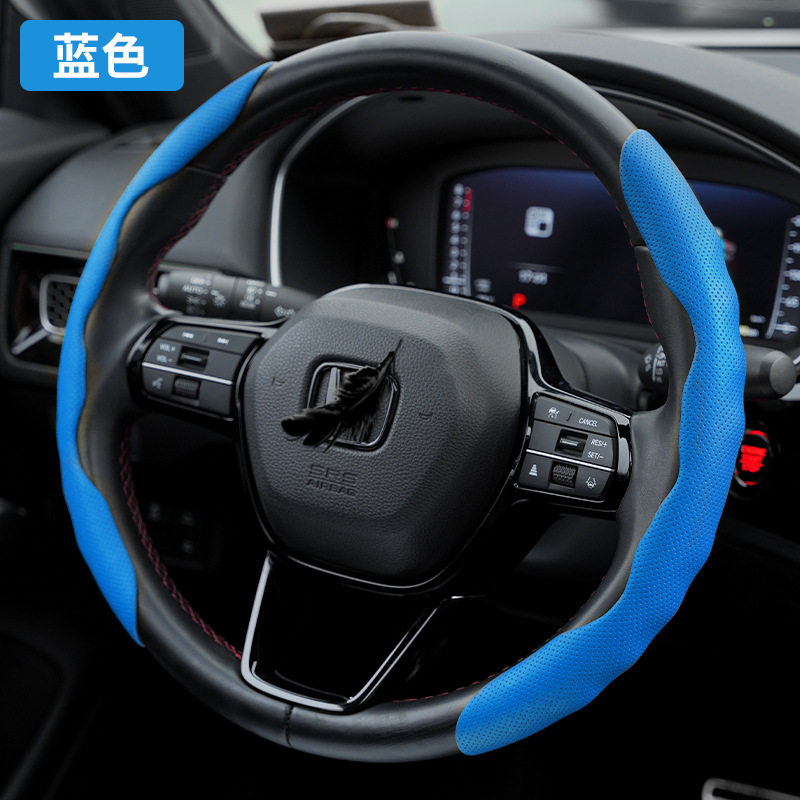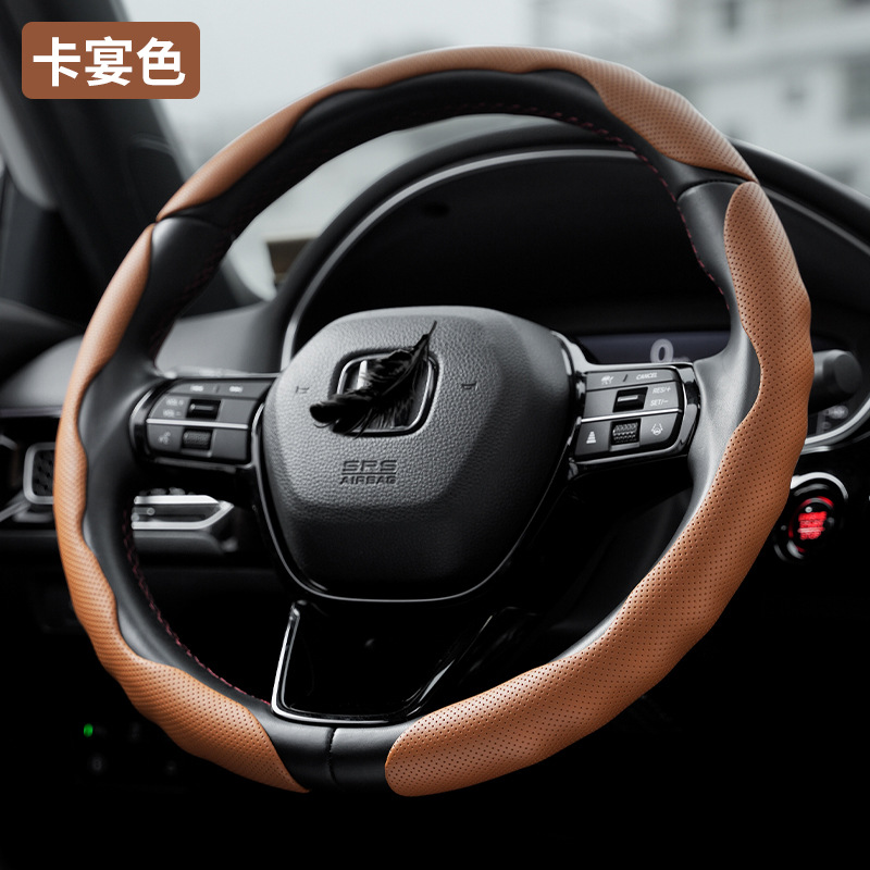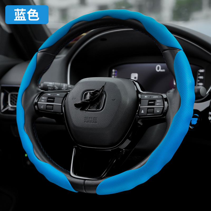 웨이브 나파 천공 초박형 사계절용 자동차 핸들 커버 미끄럼 방지 땀 흡수 카드형 핸들 커버 도매 및 배송