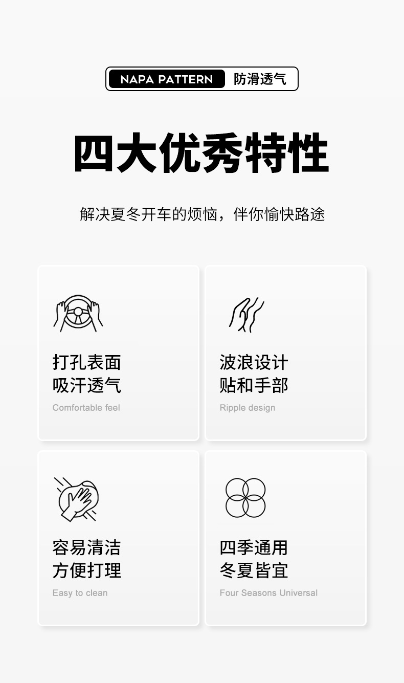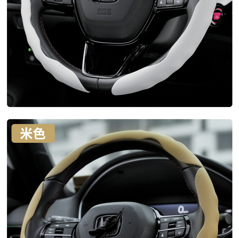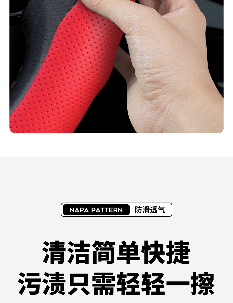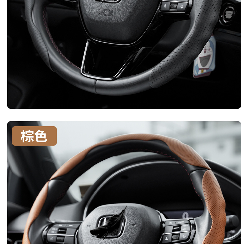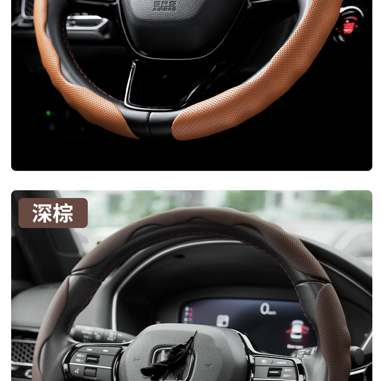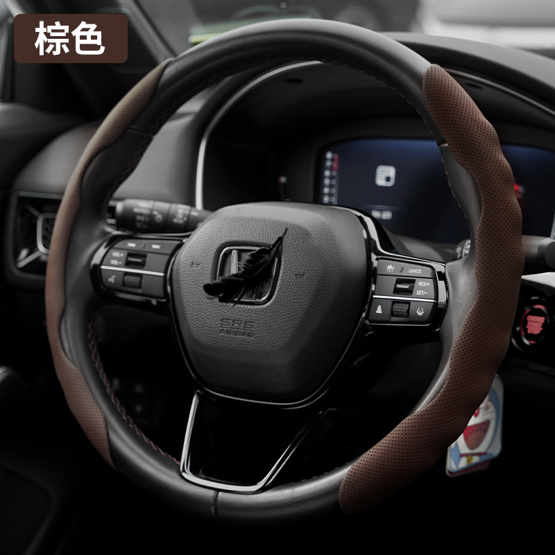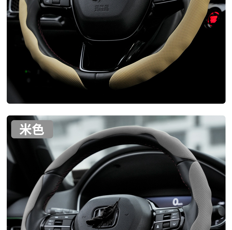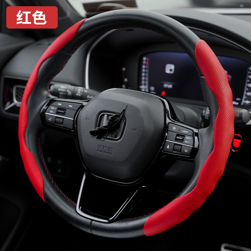 웨이브 나파 천공 초박형 사계절용 자동차 핸들 커버 미끄럼 방지 땀 흡수 카드형 핸들 커버 도매 및 배송
