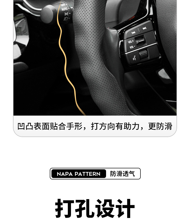 웨이브 나파 천공 초박형 사계절용 자동차 핸들 커버 미끄럼 방지 땀 흡수 카드형 핸들 커버 도매 및 배송스토어 가기