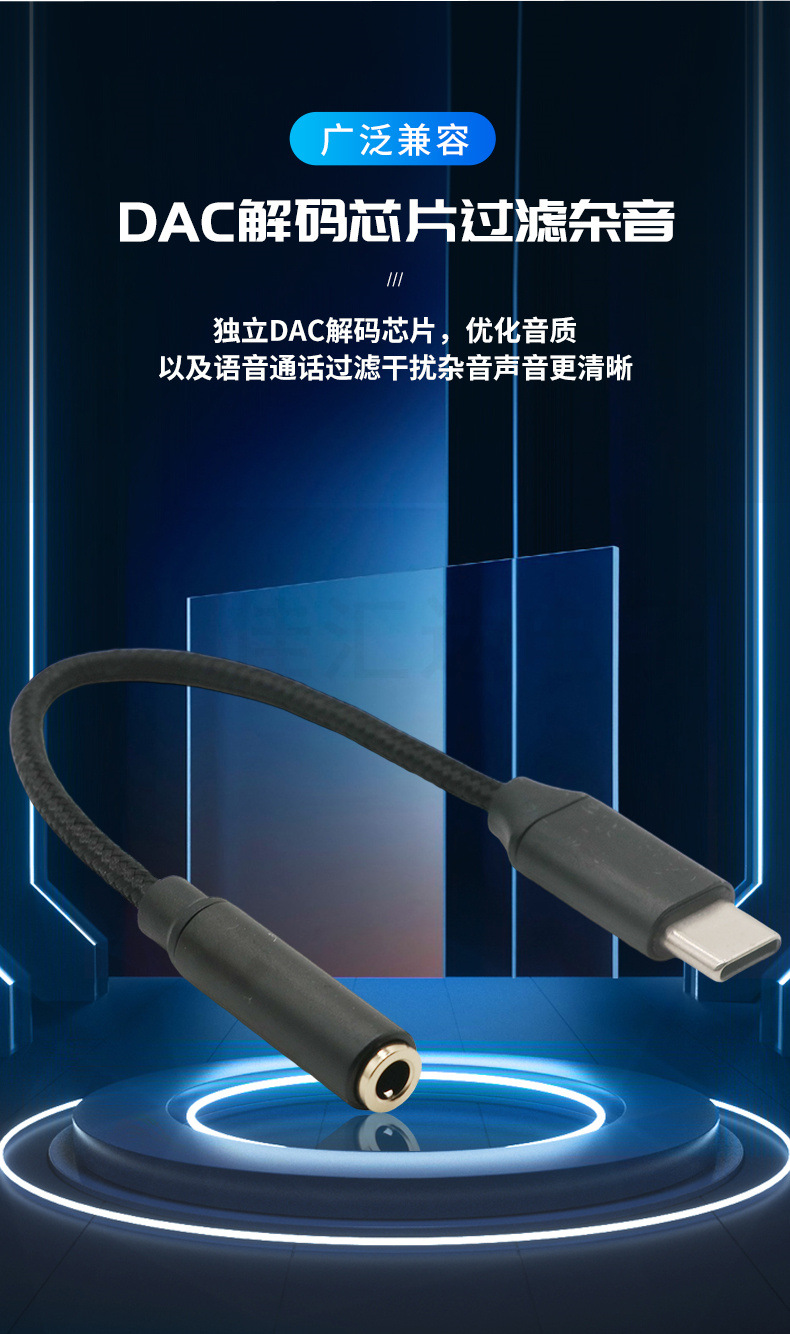 Typec 오디오 어댑터 케이블 3.5 Huawei Xiaomi Typec 남성-여성 3.5에 적합한 헤드폰 DAC 디지털 디코딩
