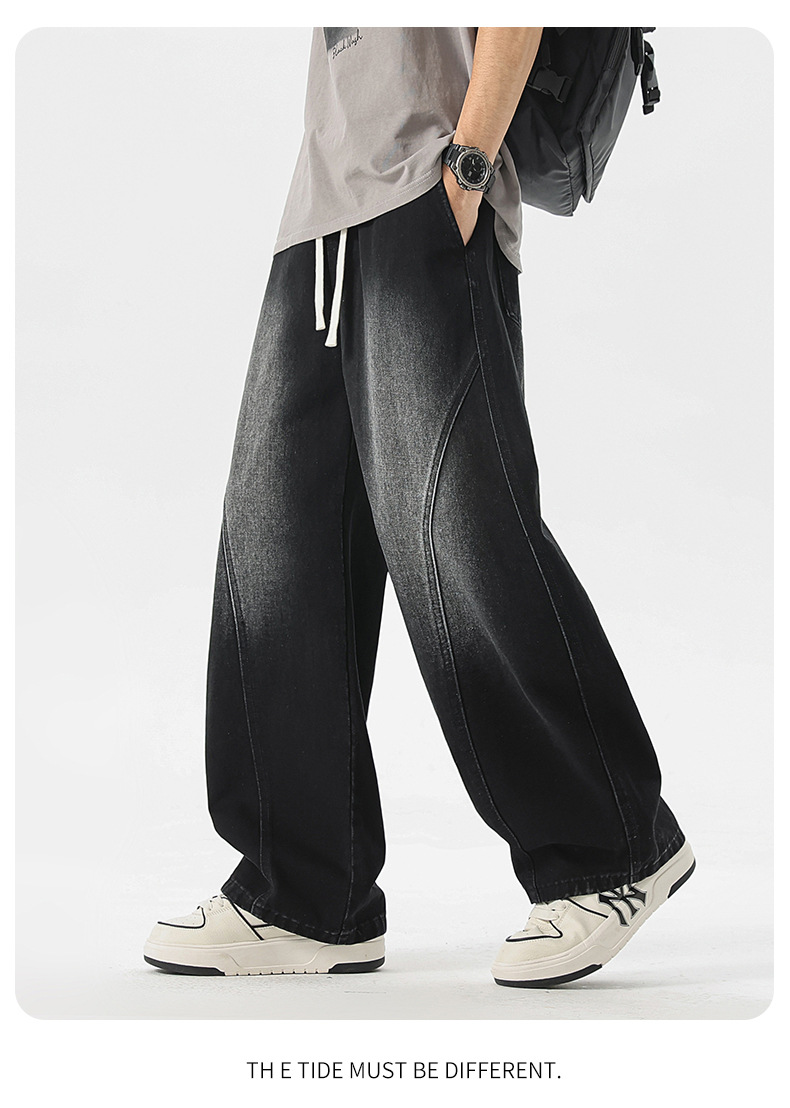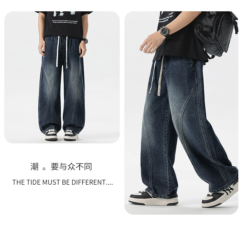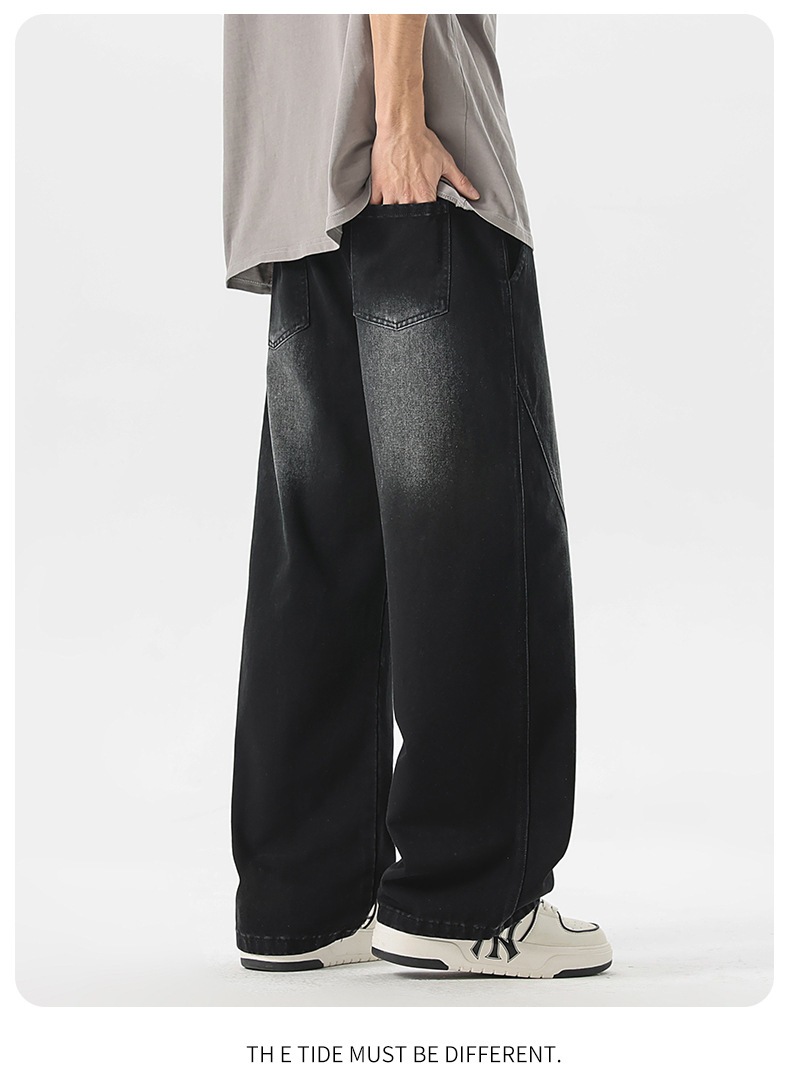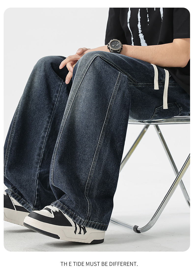 Mingshengmen 남성 여름 얇은 트렌디 브랜드 루즈 스트레이트 와이드 팬츠 남성 신작 아메리칸 하이 스트리트 레트로 청바지스토어 가기