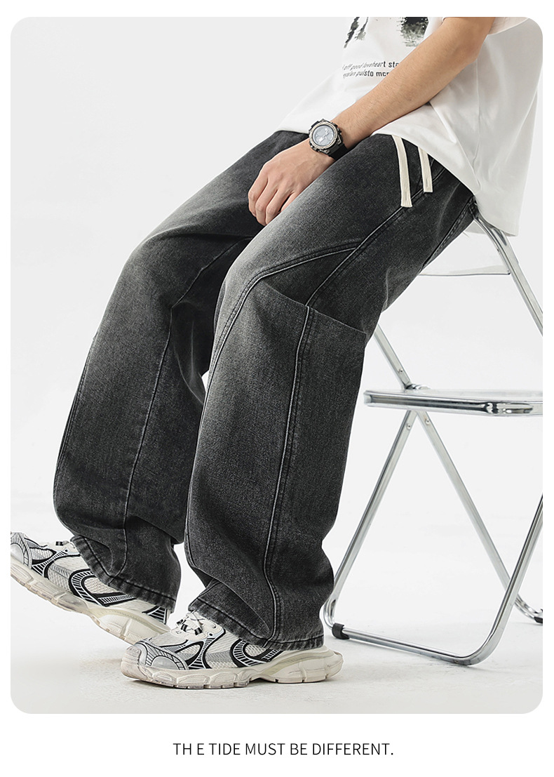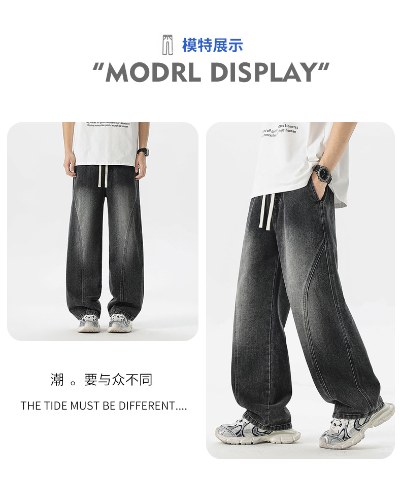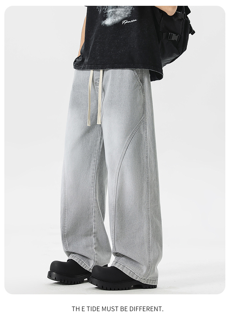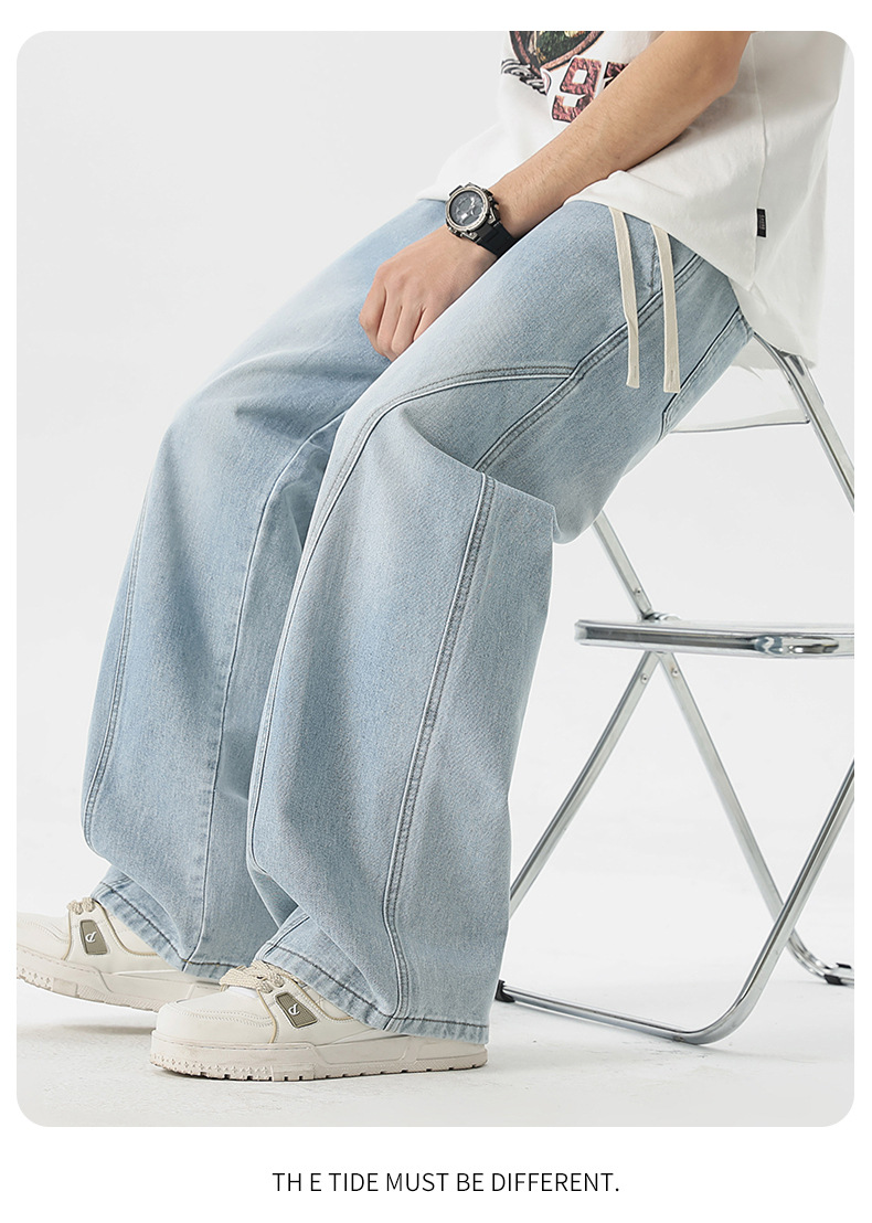 Mingshengmen 남성 여름 얇은 트렌디 브랜드 루즈 스트레이트 와이드 팬츠 남성 신작 아메리칸 하이 스트리트 레트로 청바지스토어 가기