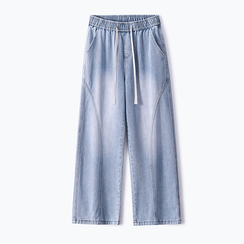 Mingshengmen 남성 여름 얇은 트렌디 브랜드 루즈 스트레이트 와이드 팬츠 남성 신작 아메리칸 하이 스트리트 레트로 청바지