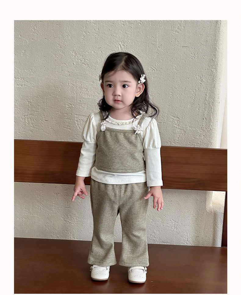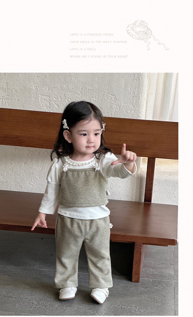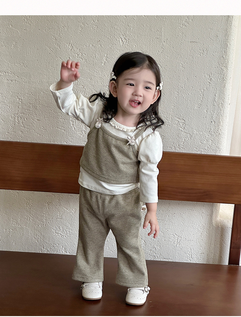 한국 아동복 봄, 가을 신작 의류 아기 소녀 가을 바닥 셔츠 정장 유아 작은 향기 스타일 3 피스 세트