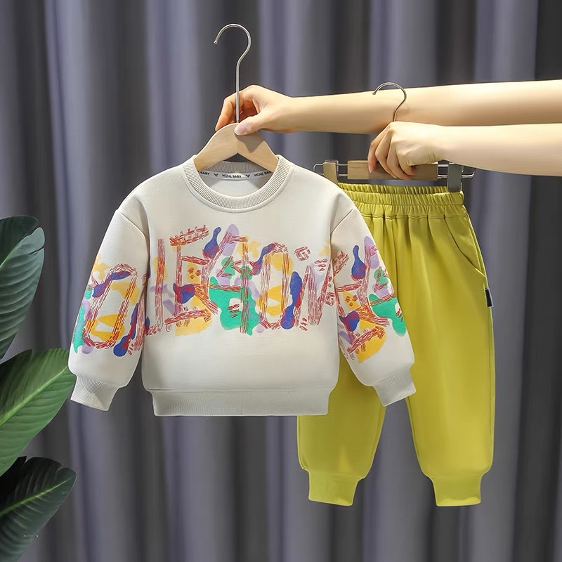 아동용 스웨트 셔츠 정장 2025 가을, 겨울 긴팔 스웨트 셔츠 스포츠 정장 서양식 어린이 캐주얼 투피스 세트스토어 가기
