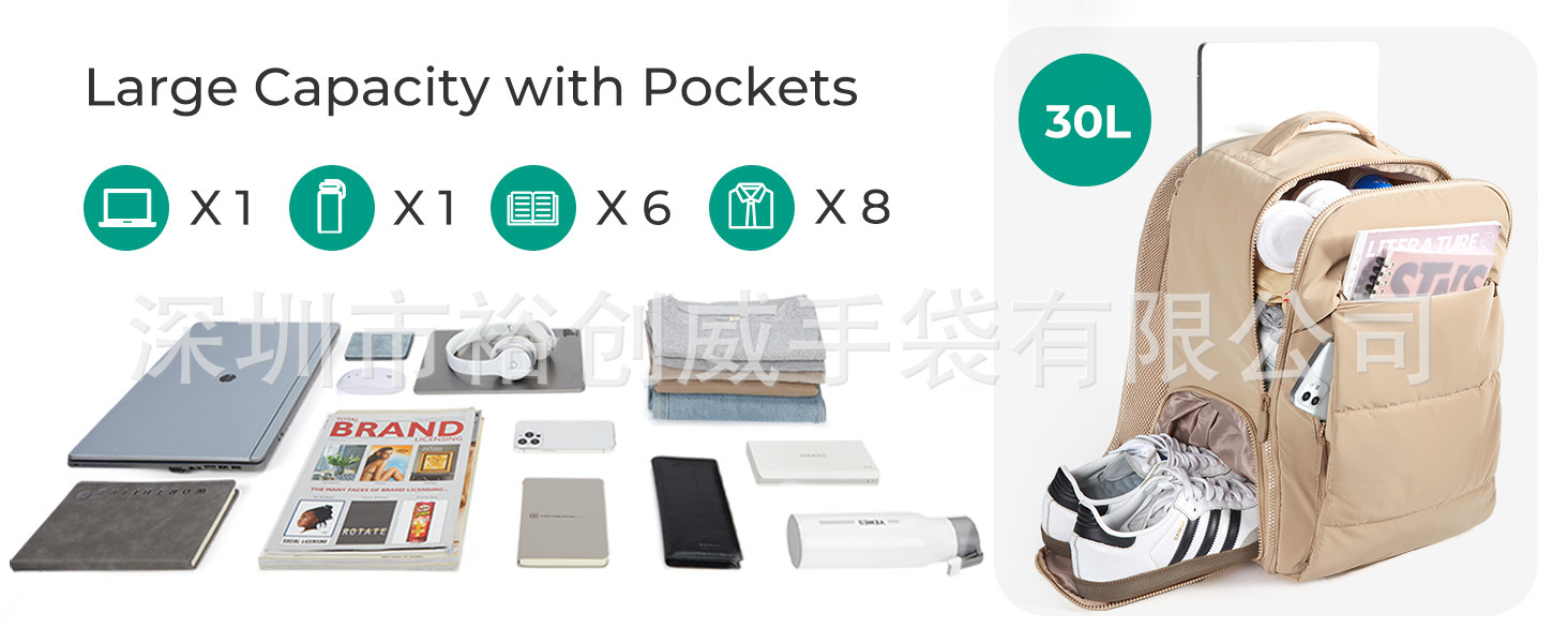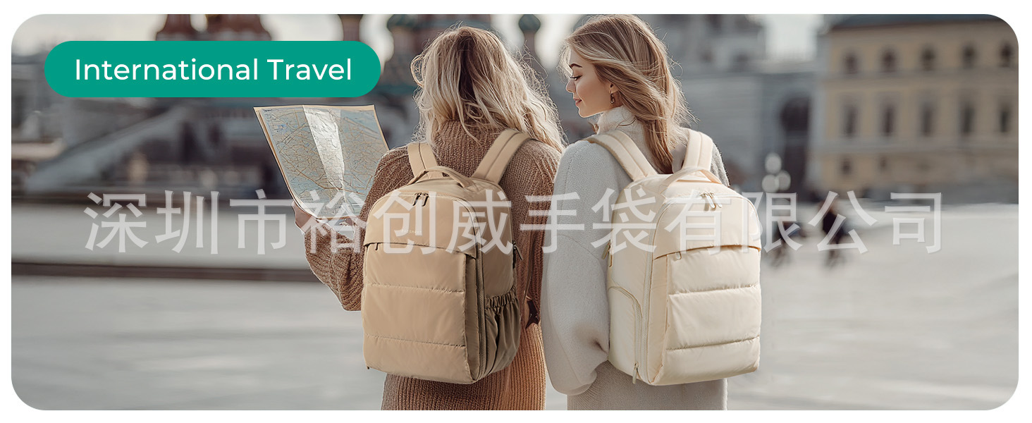 맞춤형 야외 다운 코튼 백팩, 새로운 일본식 화이트 여성용 백팩, 단거리 여행용 컴퓨터 가방