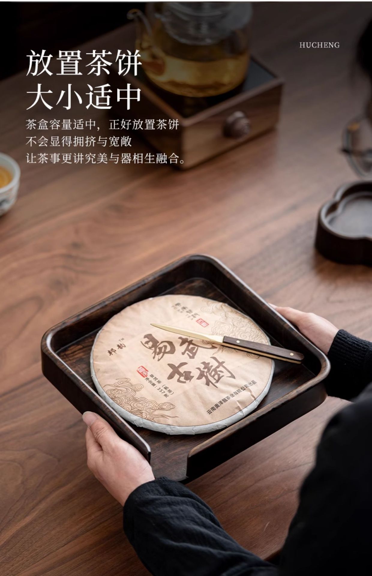 원목 일체형 흑단 차 케이크 차 트레이 푸얼 차 상자 트레이 차 트레이 오픈 차 트레이 감상 트레이 리뷰 트레이스토어 가기