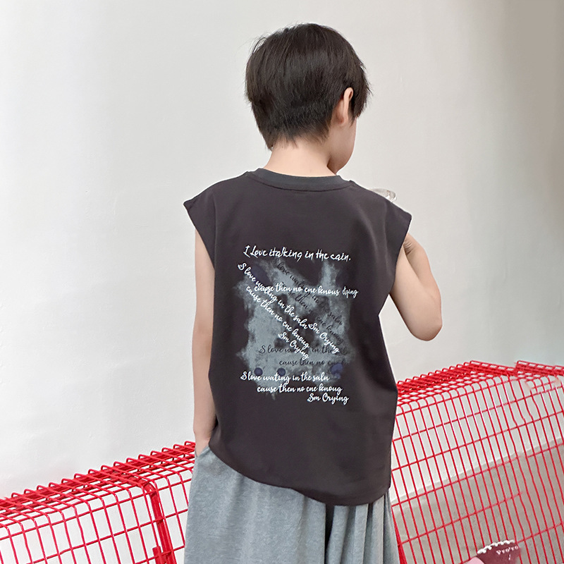 Elmo Beibei 어린이의 멋진 낙서 문자 멋진 민소매 탑 소년 중대형 어린이 느슨한 얼음 느낌 면화 조끼스토어 가기
