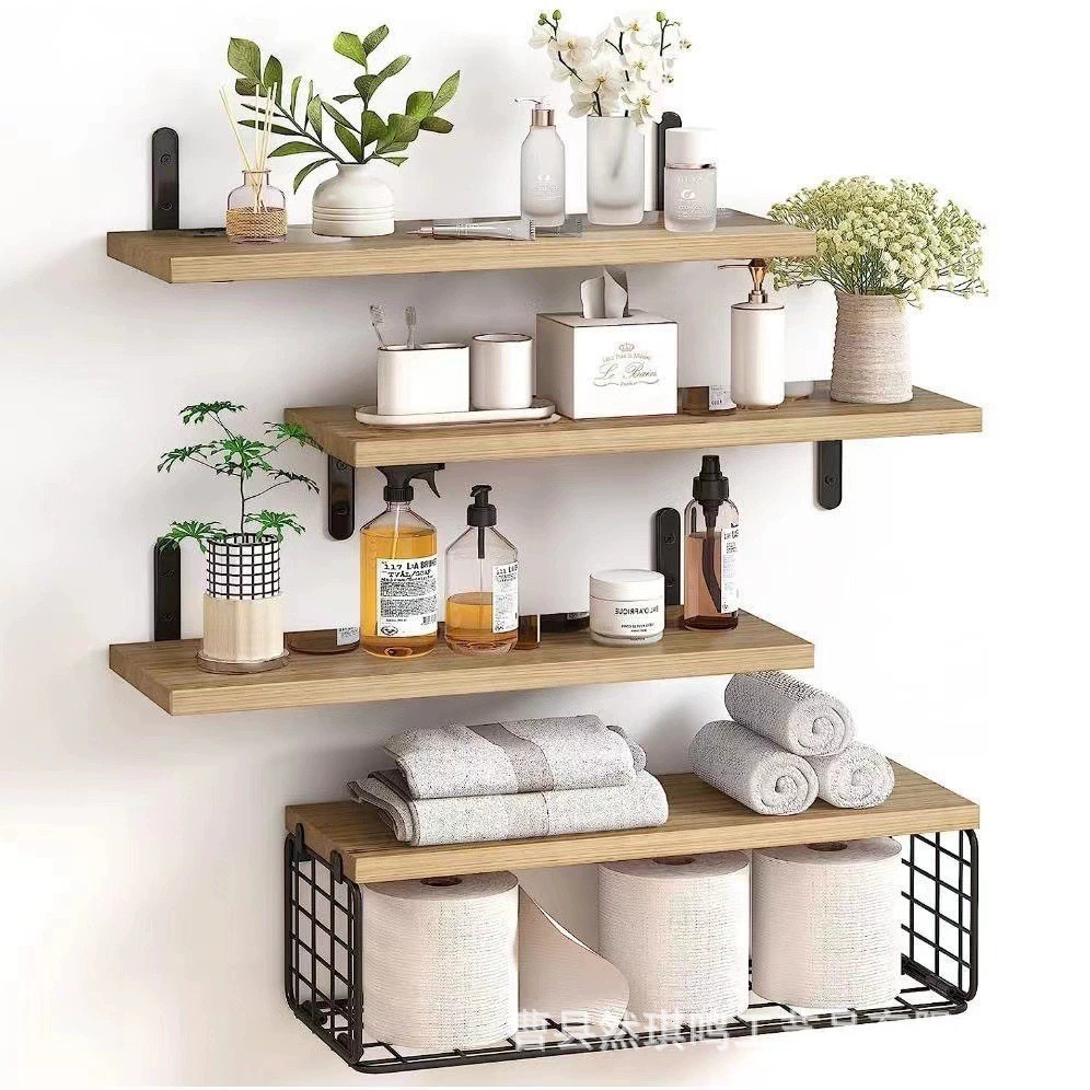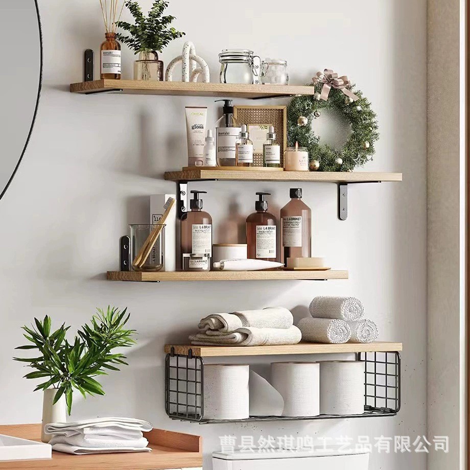 국경 간 벽걸이형 선반 단단한 목재 욕실 플로팅 파티션 보관함 펀치 없는 화장품 보관 및 정리함스토어 가기