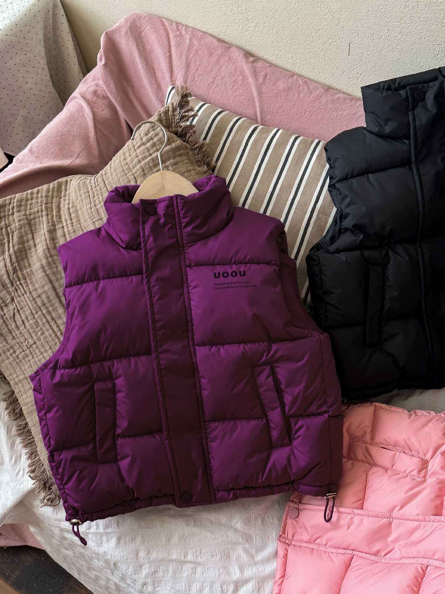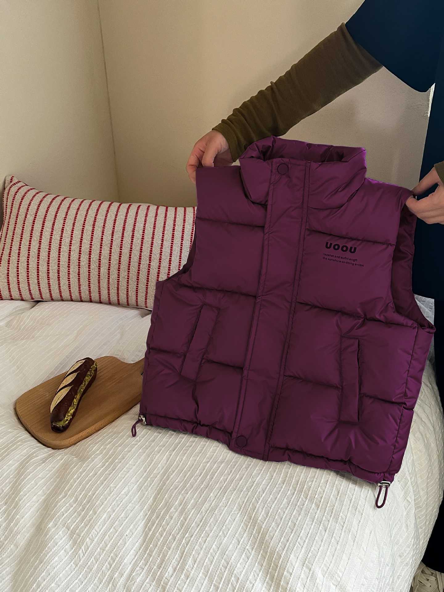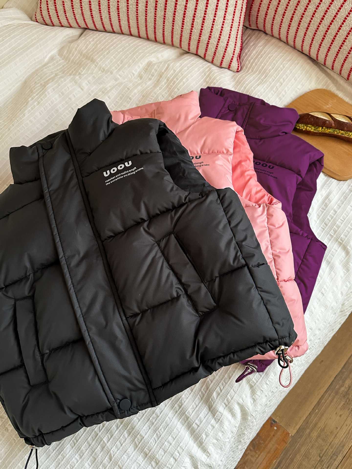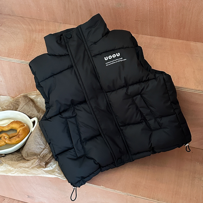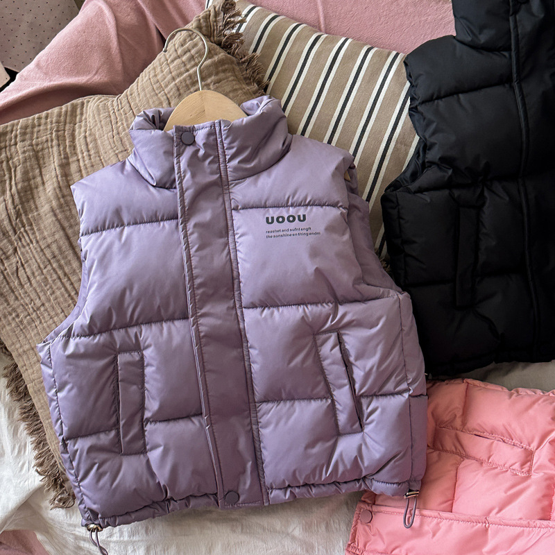 어린이용 다용도 조끼, 중대형 아동용 남아 및 여아 한국식 스탠드 칼라 가을 겨울 아우터 조끼 조끼 대외 무역스토어 가기