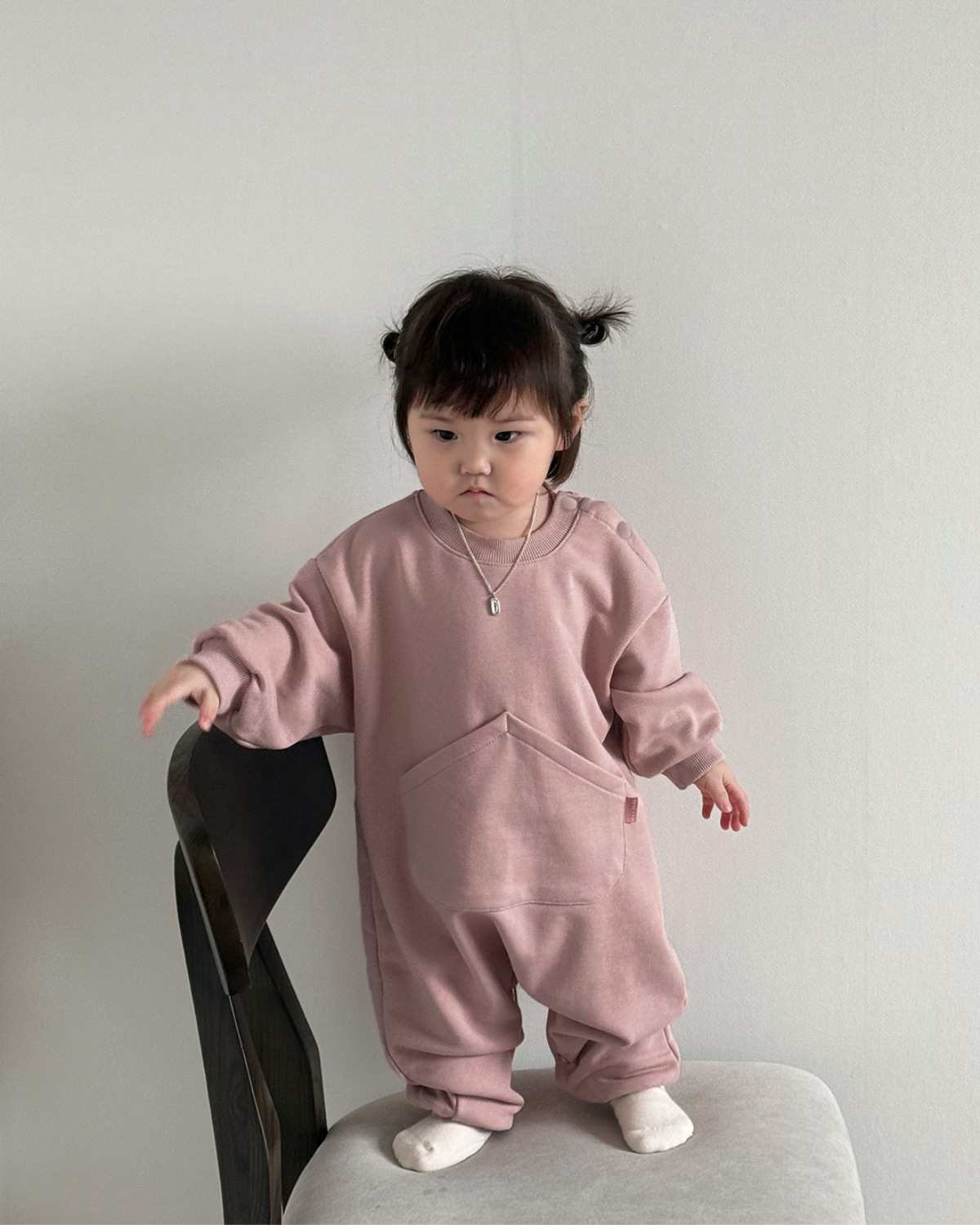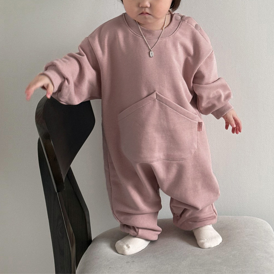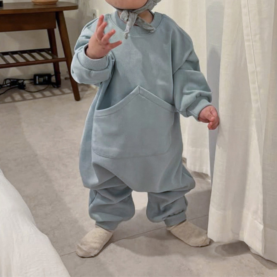 신생아옷, 가을스타일, A형, 남아, 여아, 단색, 큰주머니, 다리가 긴 롱바디수트, 아우터용 베이비점프수트스토어 가기