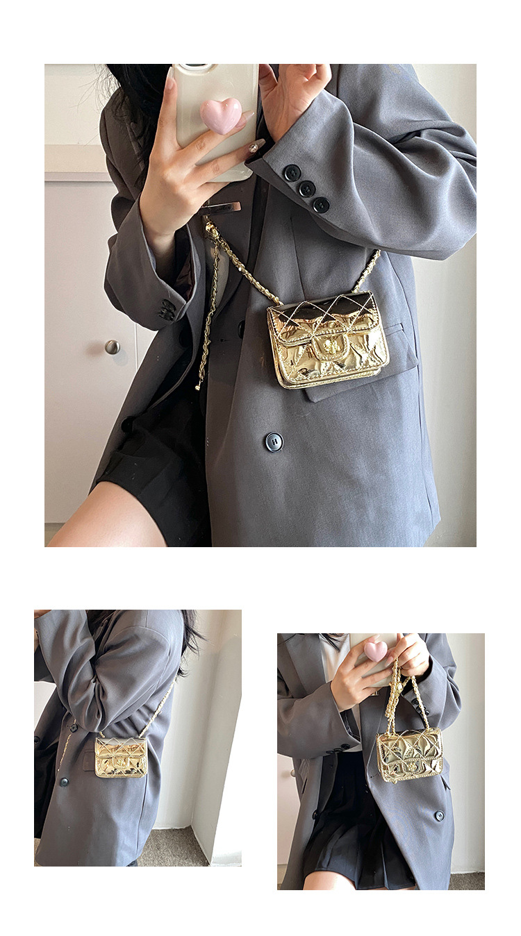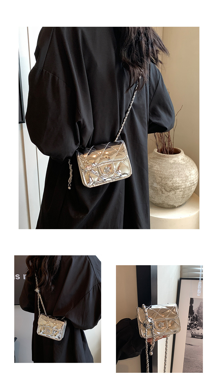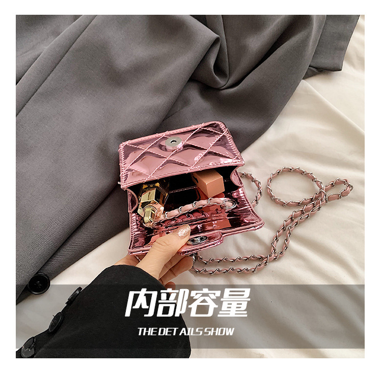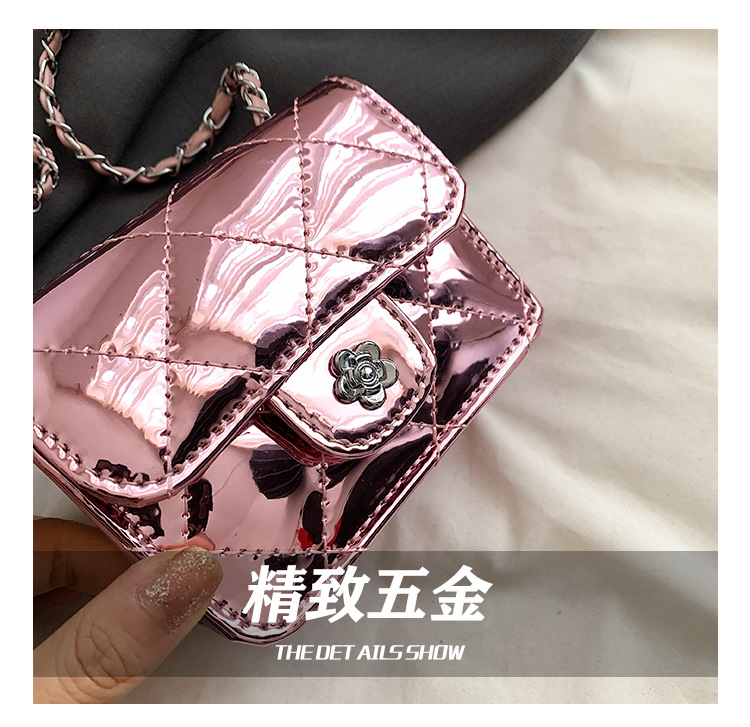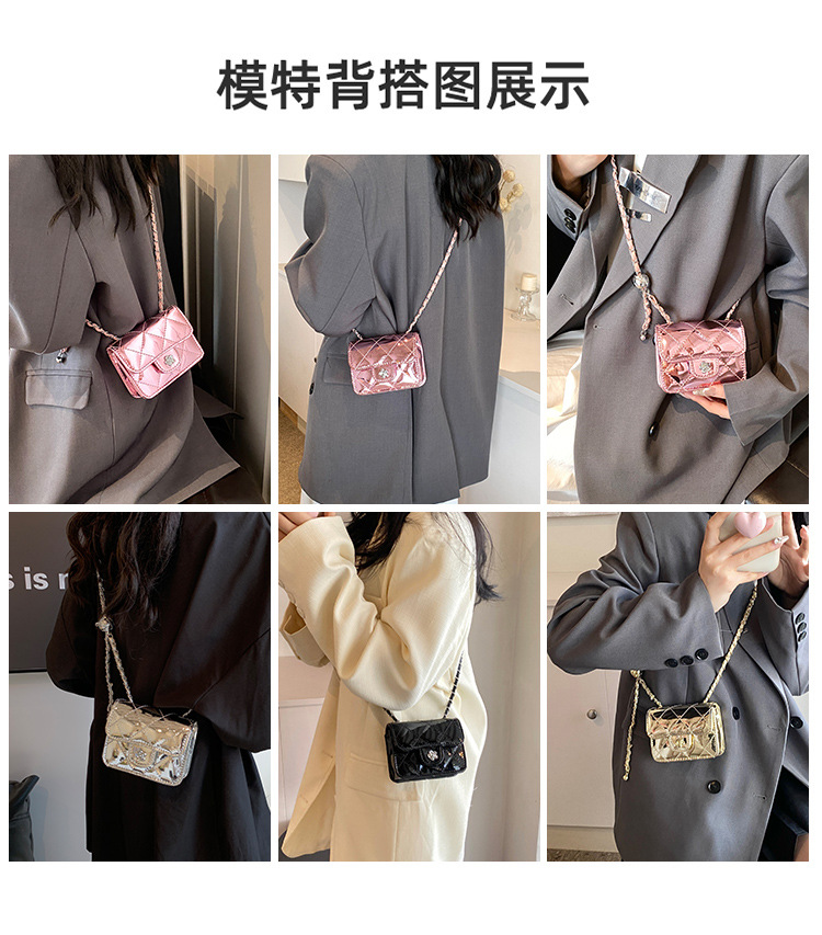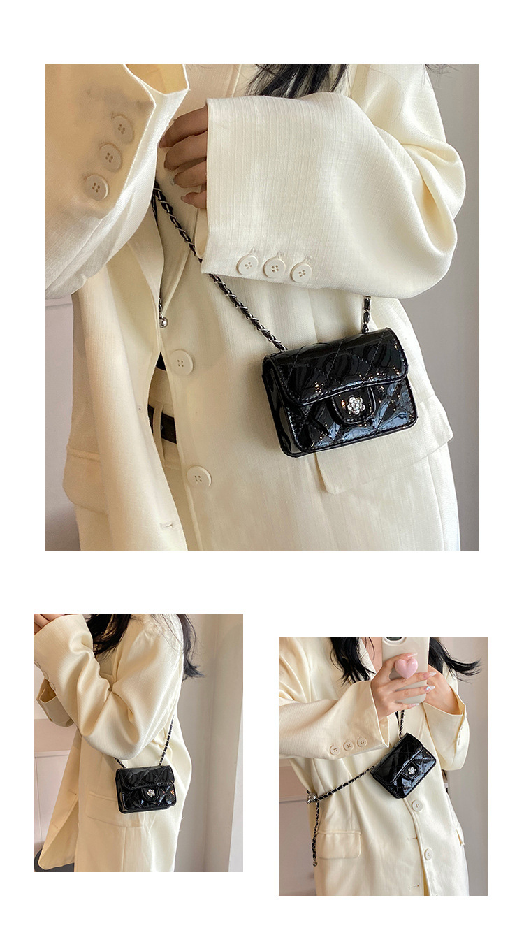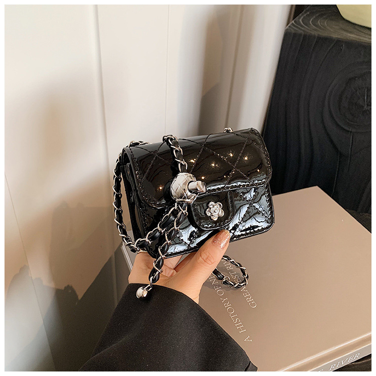 여성을위한 여름 패션 특허 가죽 광택 미니 가방 2024 새로운 스타일 작은 향기로운 마름모 체인 크로스 바디 백스토어 가기