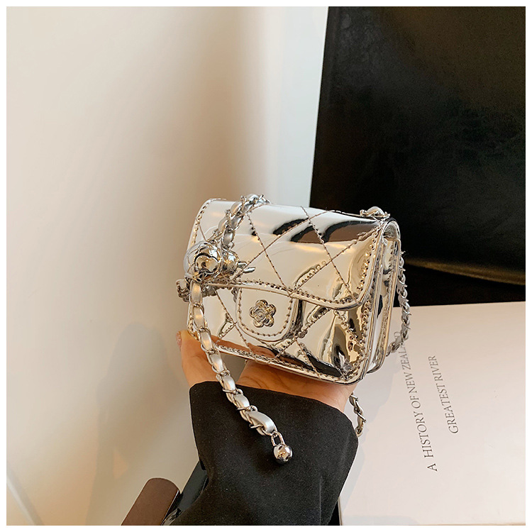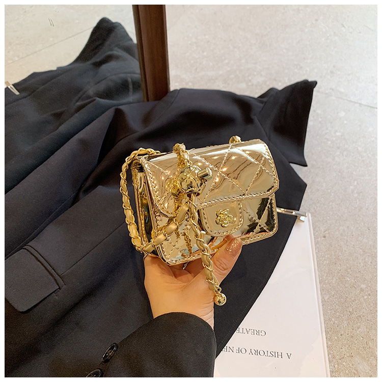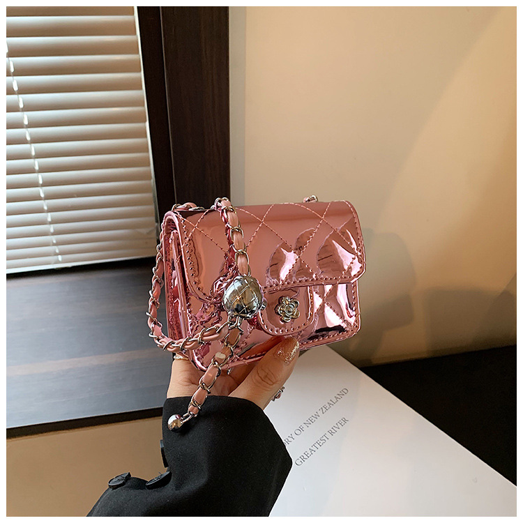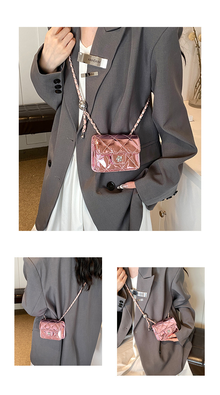 여성을위한 여름 패션 특허 가죽 광택 미니 가방 2024 새로운 스타일 작은 향기로운 마름모 체인 크로스 바디 백