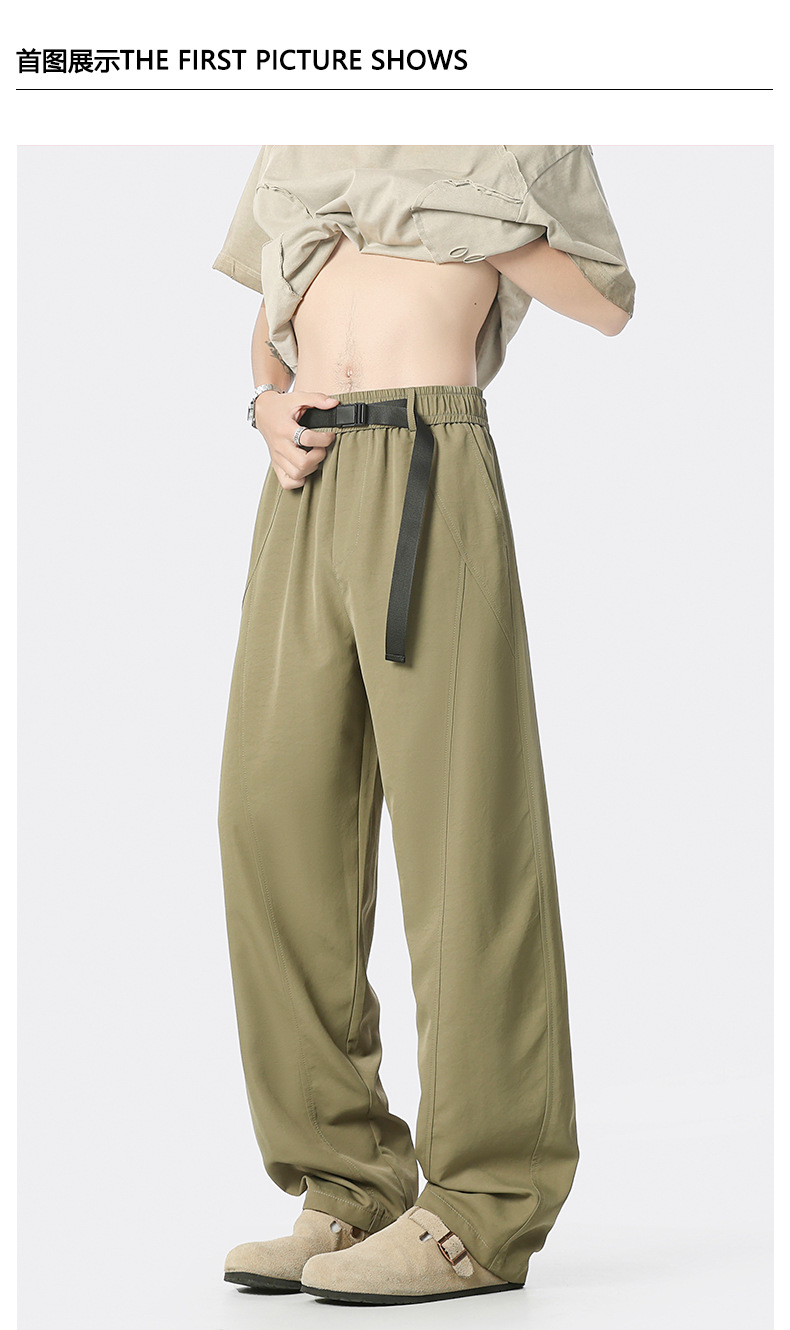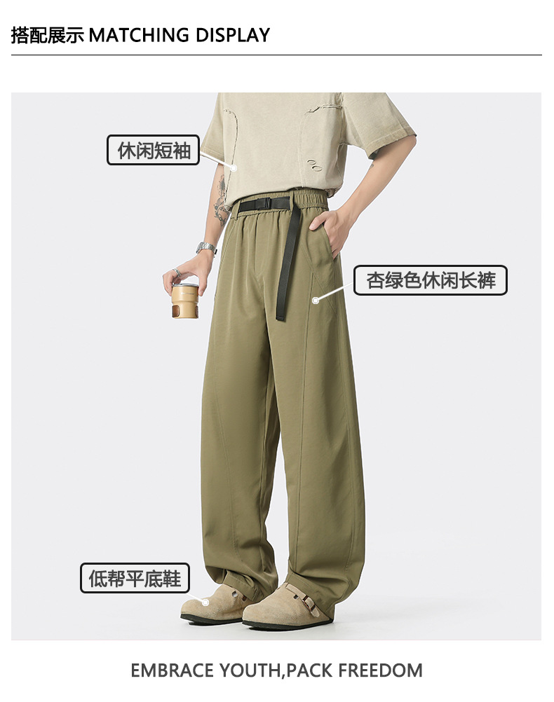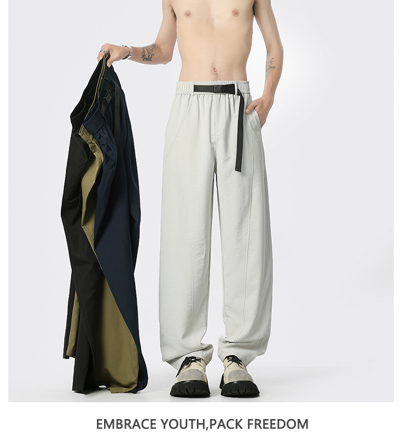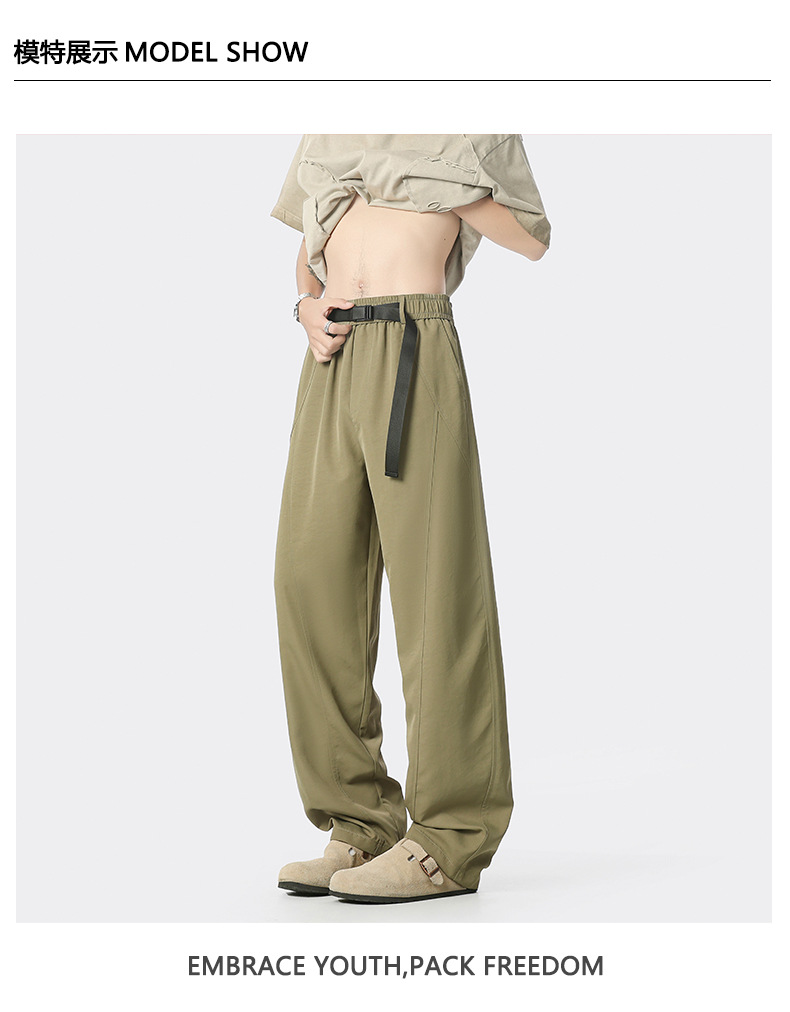 Lewe 남성복丨남성 캐주얼 바지 여름 얇은 부드러운 주름 방지 속건성 통기성 시원한 칼날 스트레이트 아이스 실크 바지