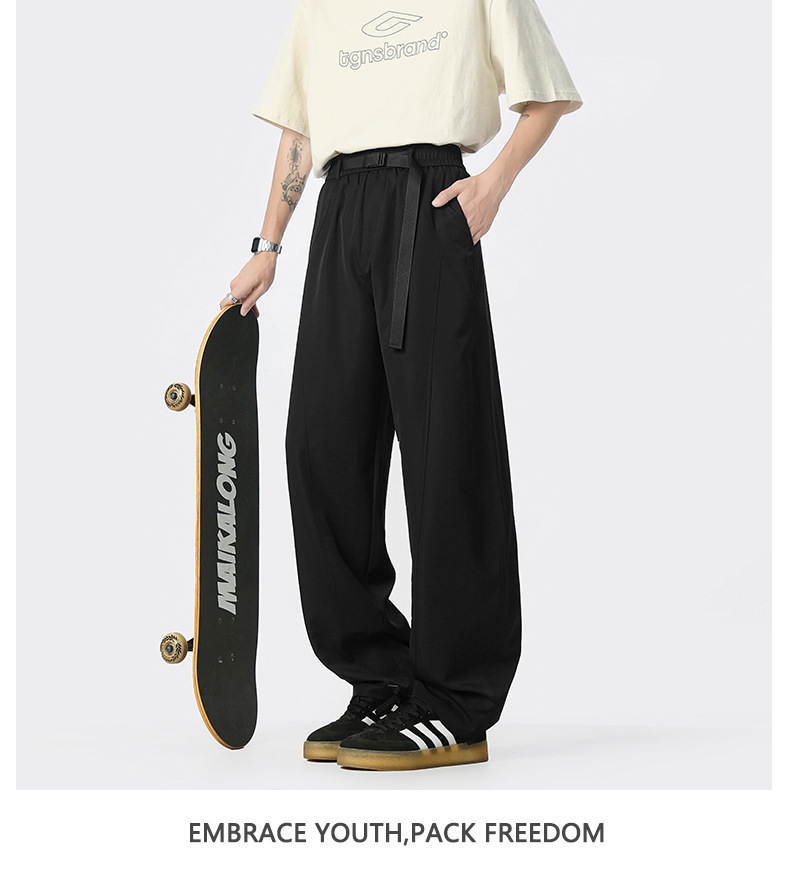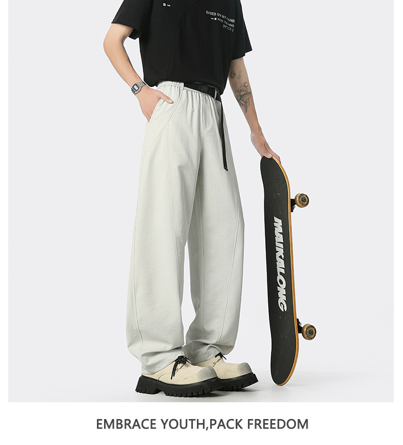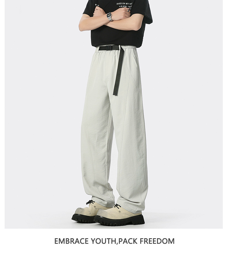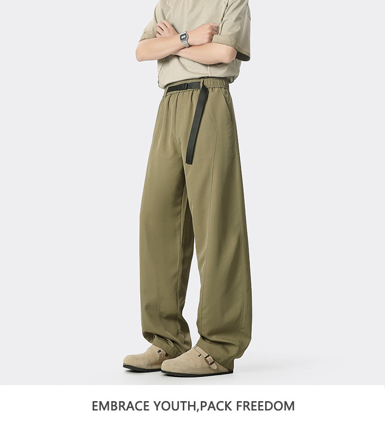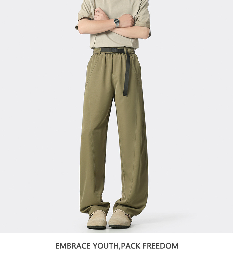 Lewe 남성복丨남성 캐주얼 바지 여름 얇은 부드러운 주름 방지 속건성 통기성 시원한 칼날 스트레이트 아이스 실크 바지