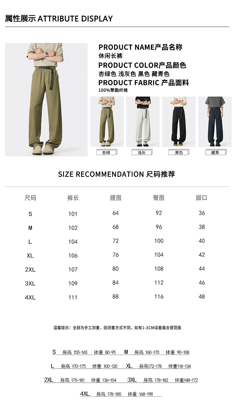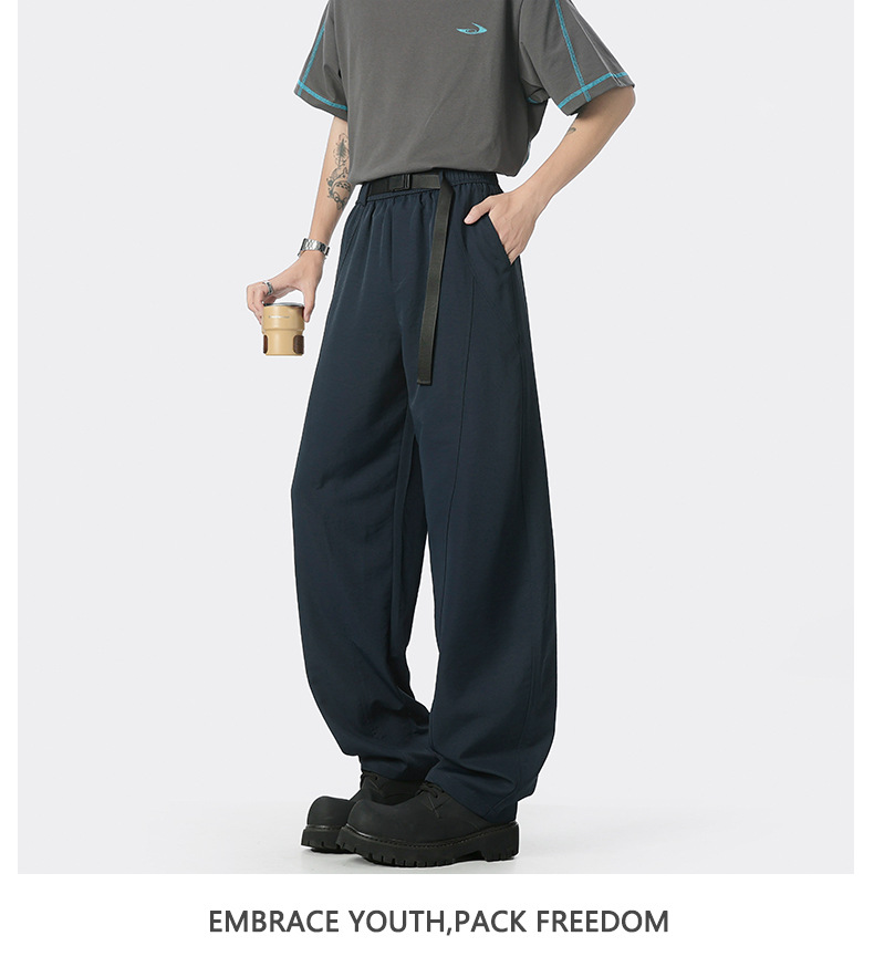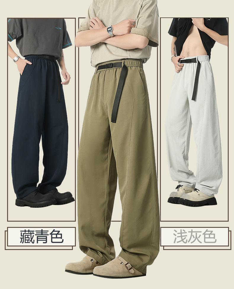 Lewe 남성복丨남성 캐주얼 바지 여름 얇은 부드러운 주름 방지 속건성 통기성 시원한 칼날 스트레이트 아이스 실크 바지스토어 가기