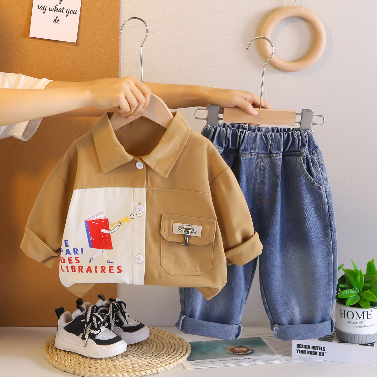 어린이 여름 2025 새로운 정장 아기 소년 스플 라이스 라펠 재킷 셔츠 어린이 투피스 세트 도매스토어 가기