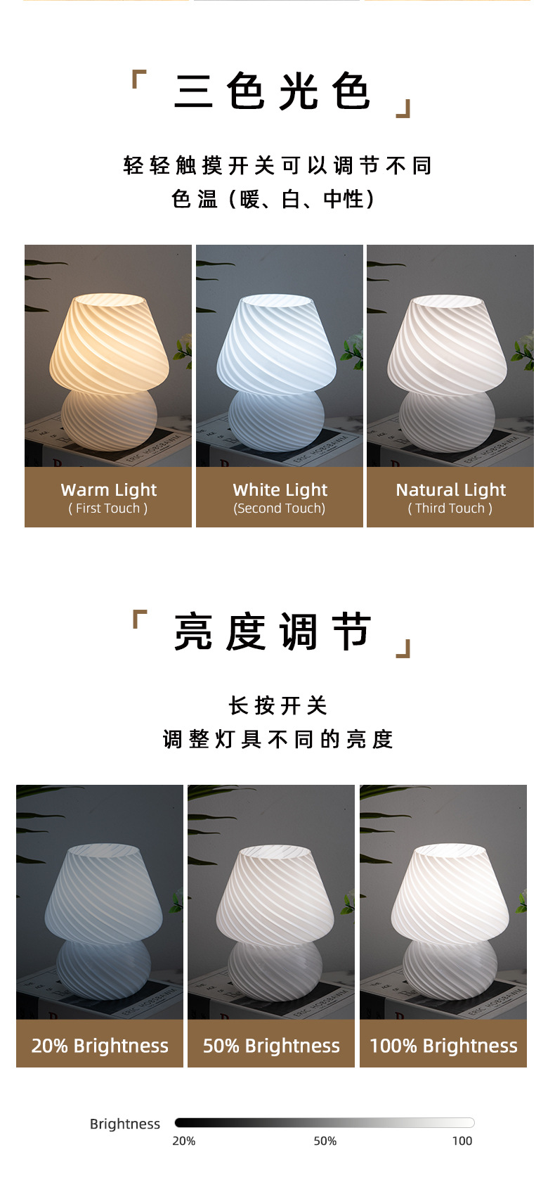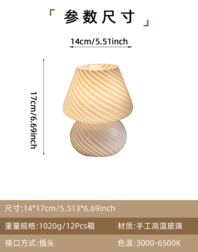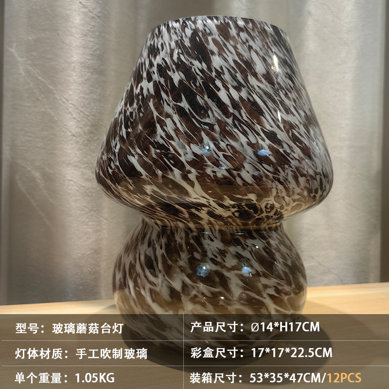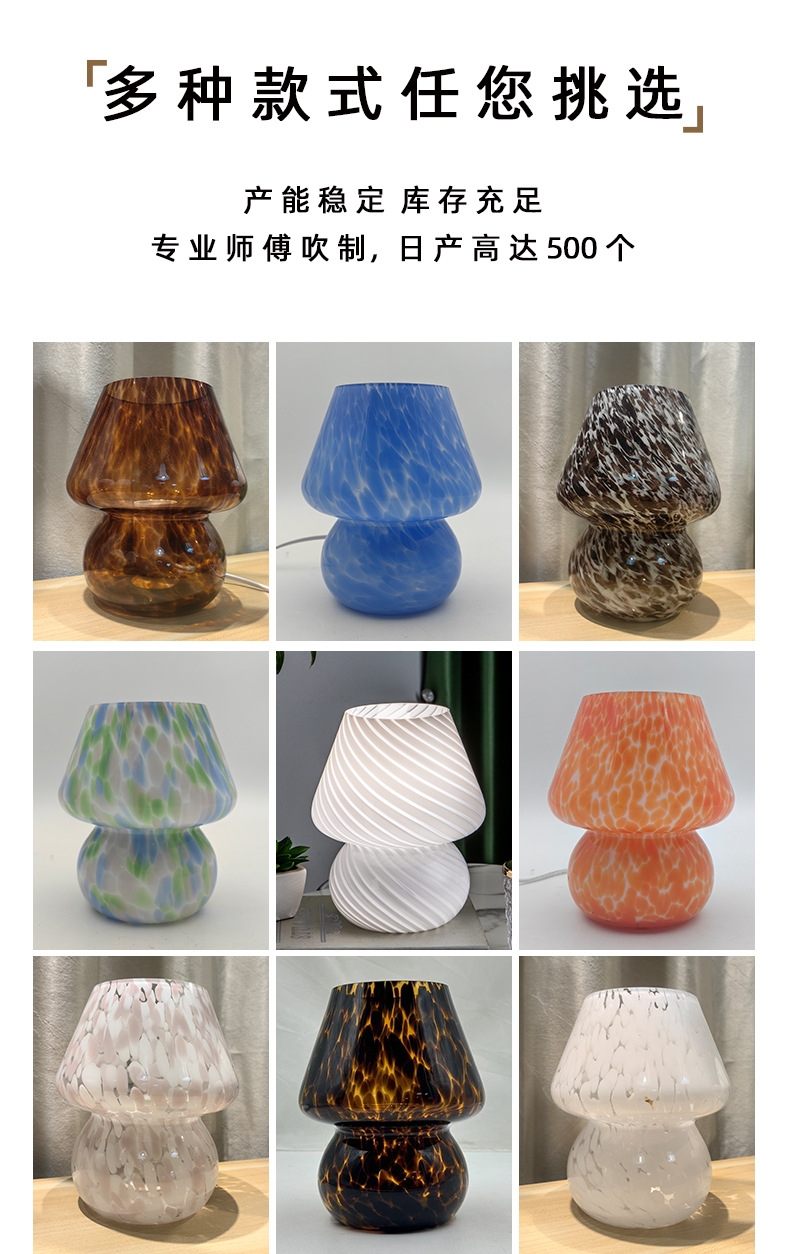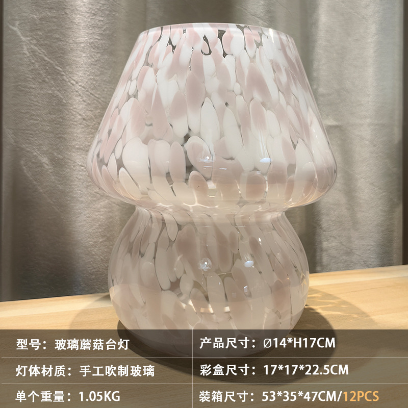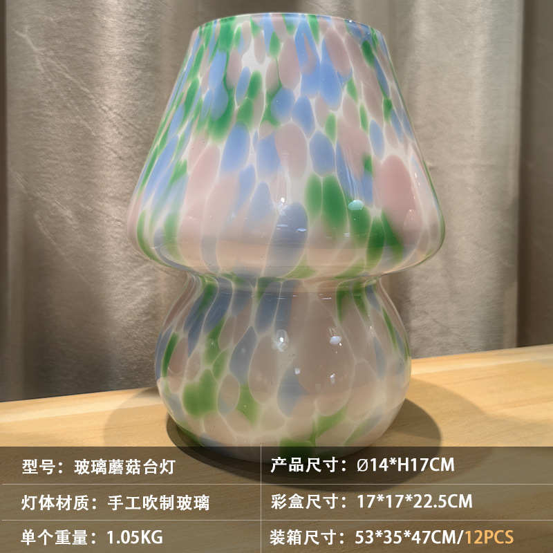 크로스보더 크리에이티브 유리 버섯 테이블 램프, 민슈쿠 서재 크림 스타일 분위기 조명, 침실 침대 옆 램프, 아마존 야간 조명스토어 가기