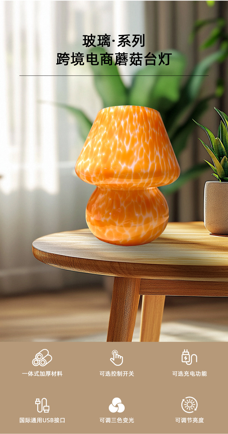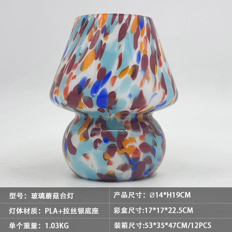 크로스보더 크리에이티브 유리 버섯 테이블 램프, 민슈쿠 서재 크림 스타일 분위기 조명, 침실 침대 옆 램프, 아마존 야간 조명