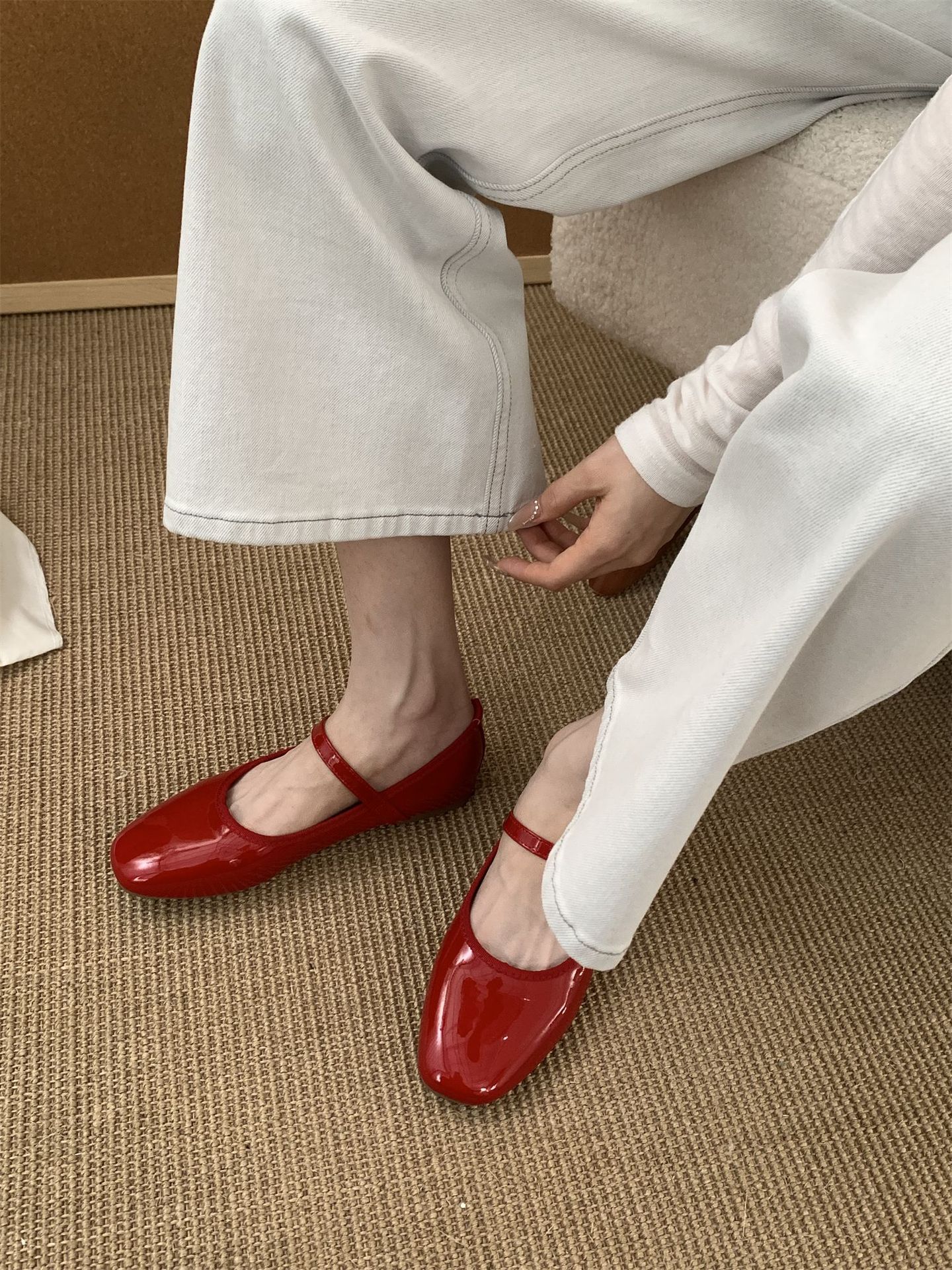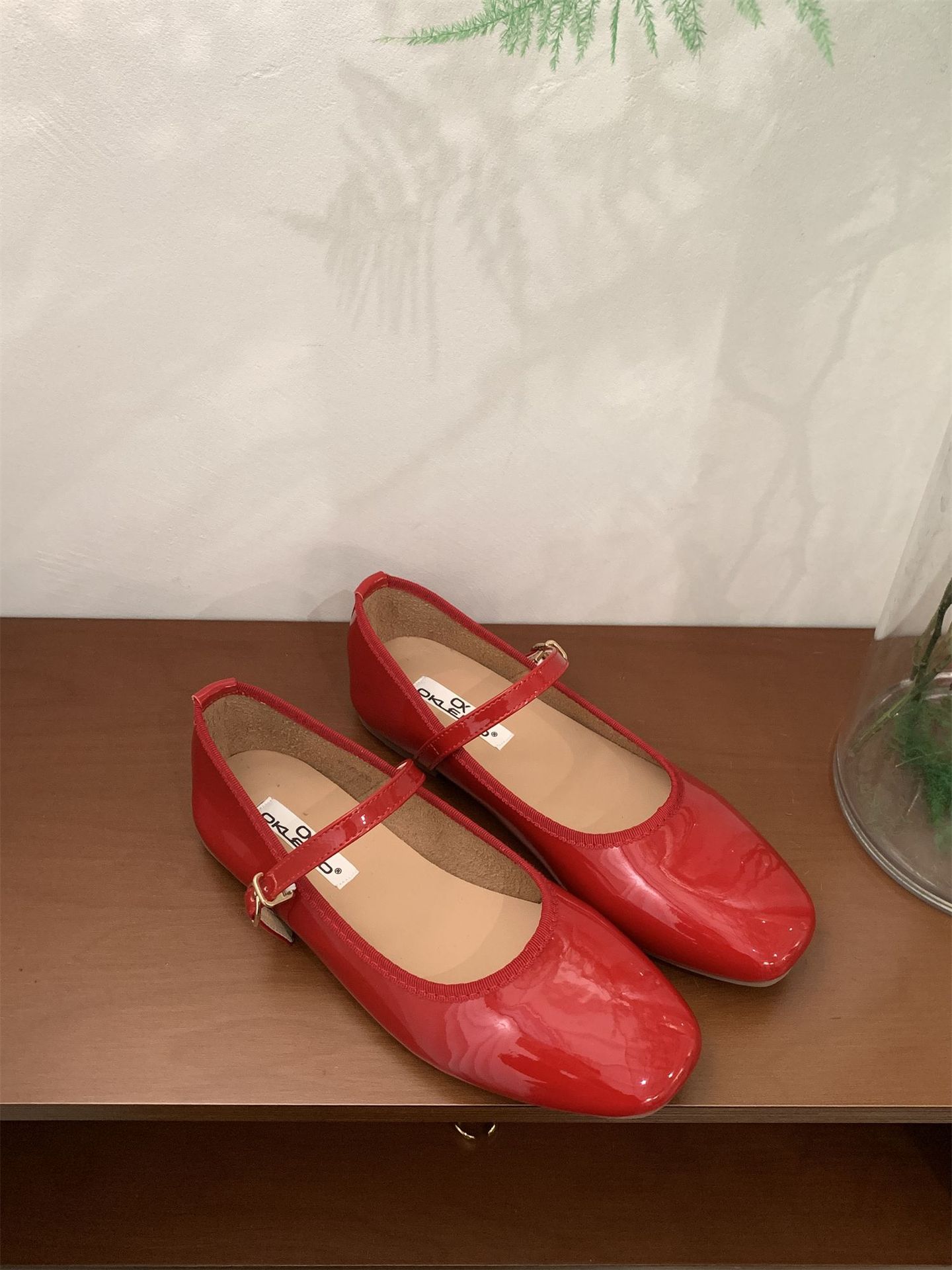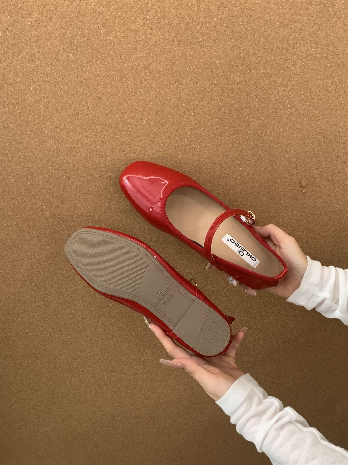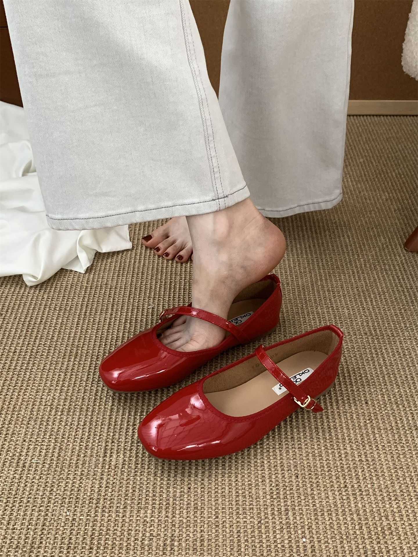 2025 소프트 양가죽 프렌치 레트로 버건디 발레 슈즈 원라인 버클 싱글 슈즈 여성 플랫 메리 제인 작은 가죽 신발스토어 가기