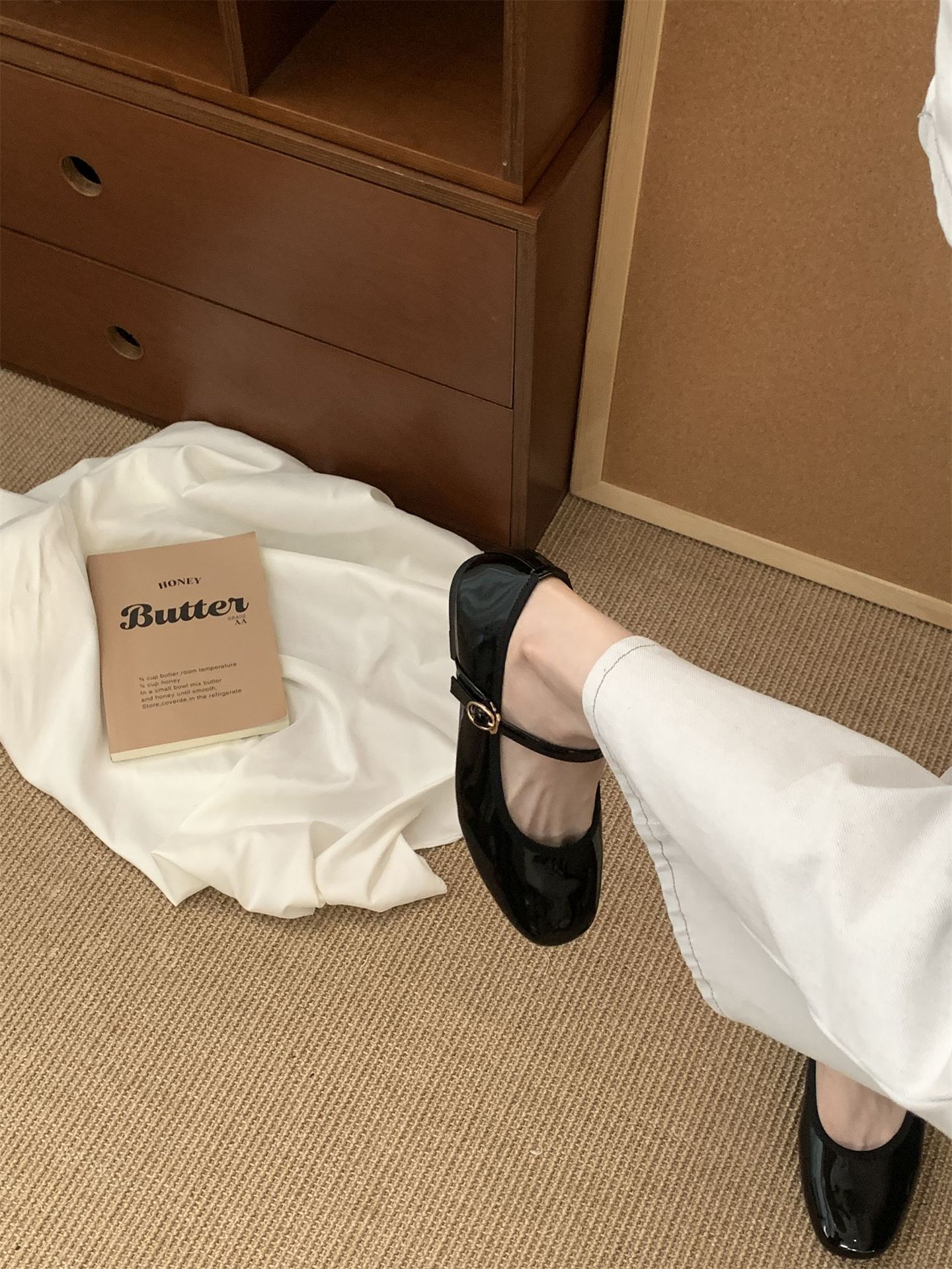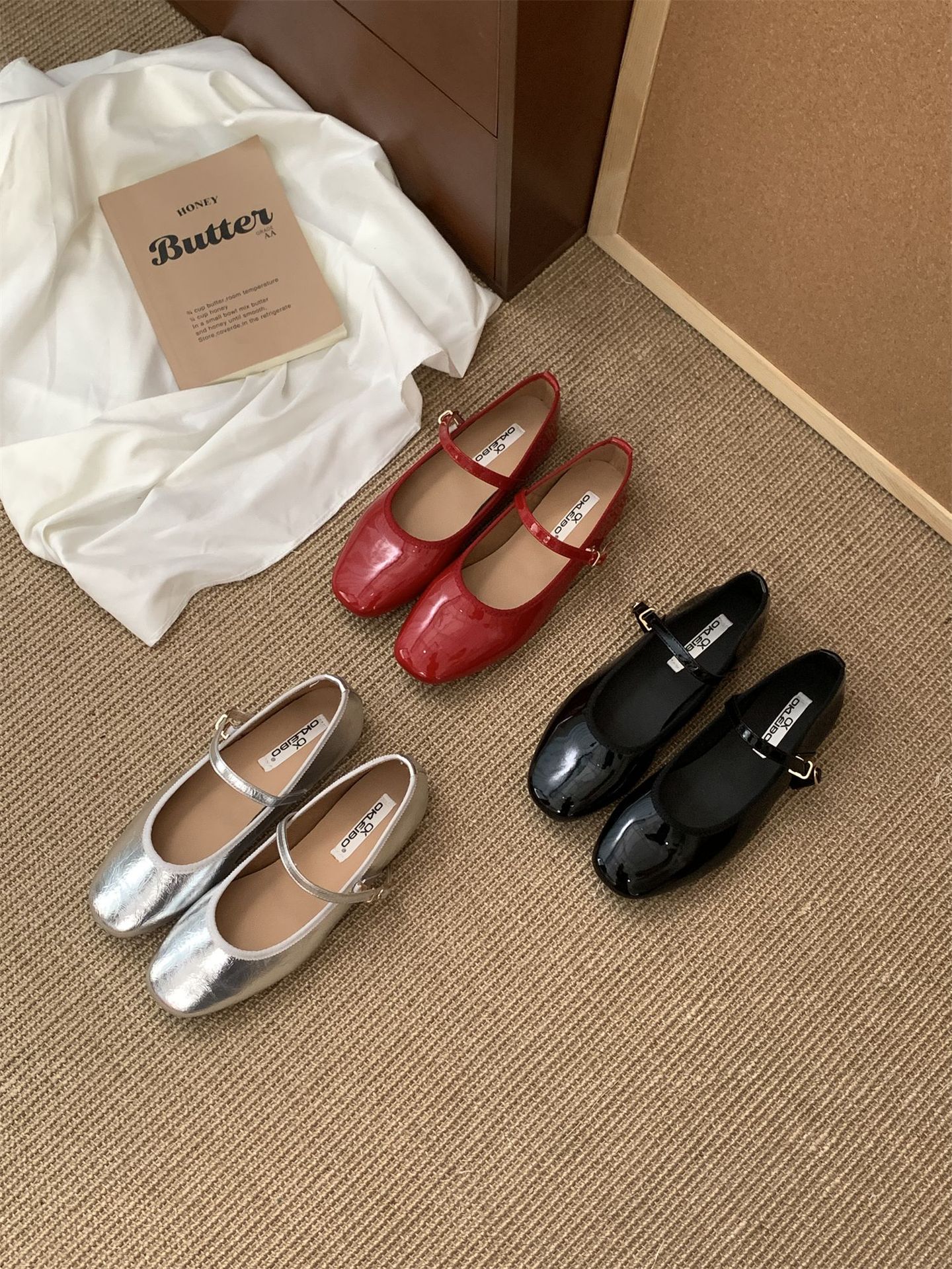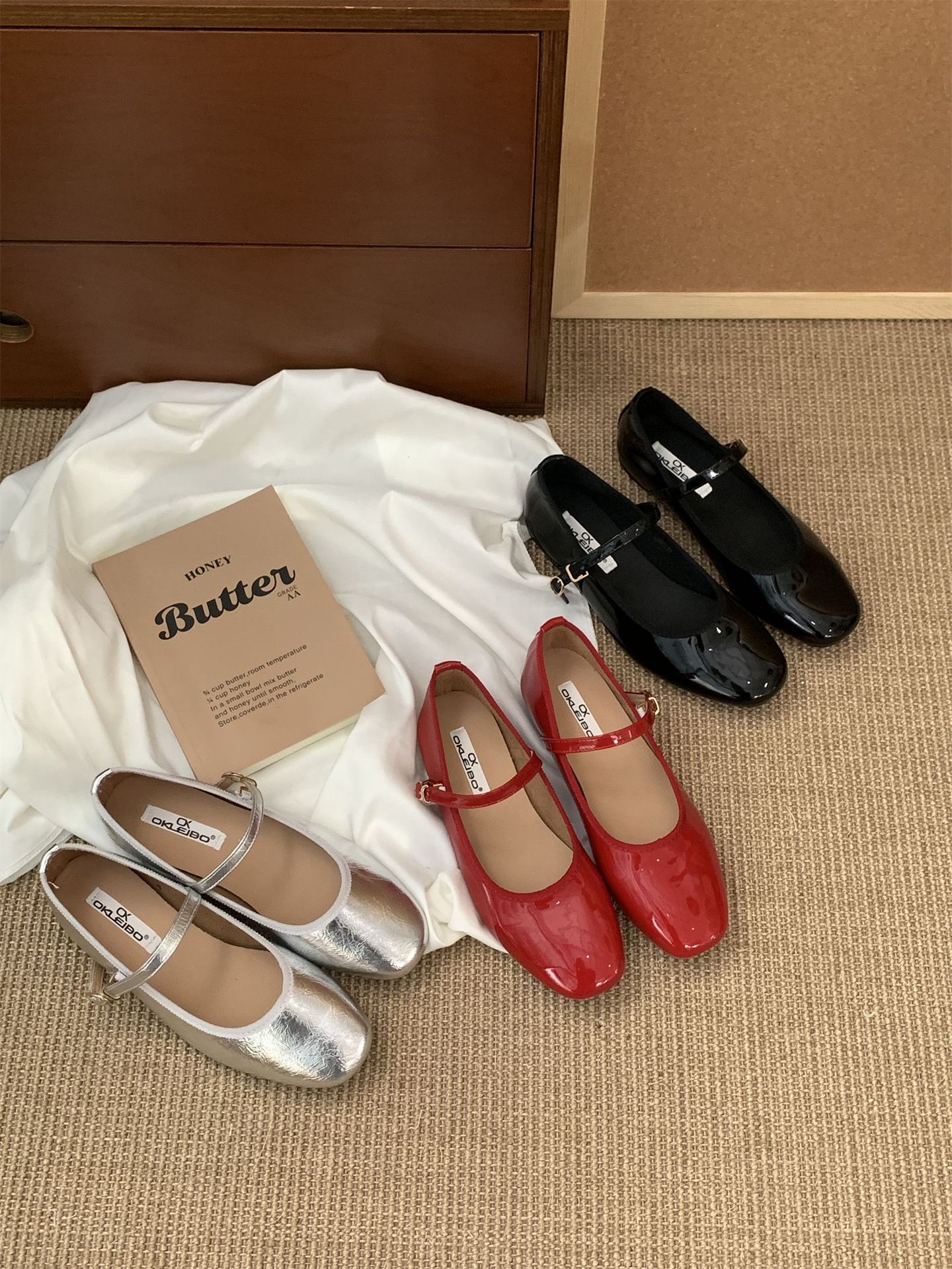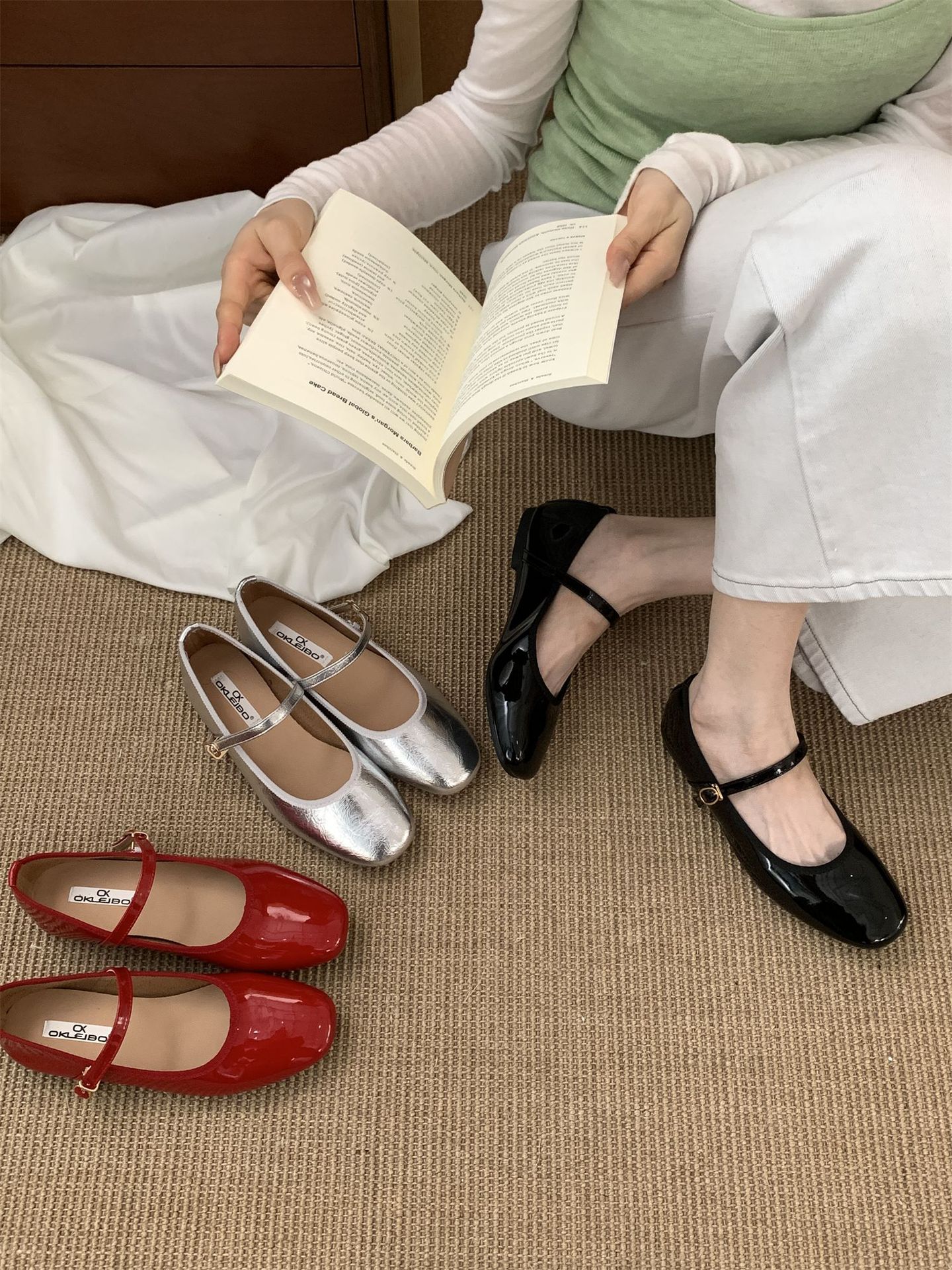 2025 소프트 양가죽 프렌치 레트로 버건디 발레 슈즈 원라인 버클 싱글 슈즈 여성 플랫 메리 제인 작은 가죽 신발스토어 가기