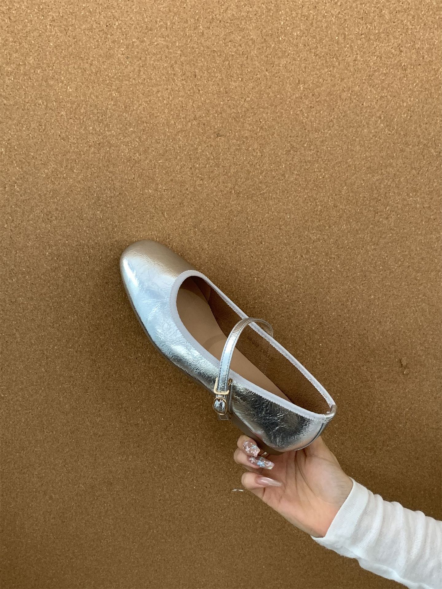 2025 소프트 양가죽 프렌치 레트로 버건디 발레 슈즈 원라인 버클 싱글 슈즈 여성 플랫 메리 제인 작은 가죽 신발