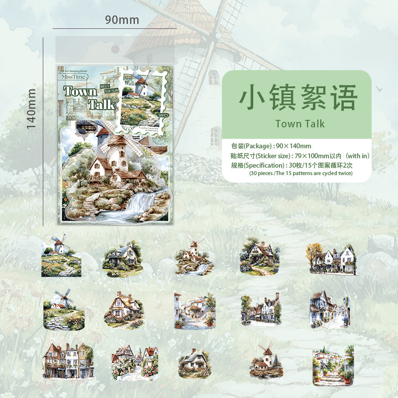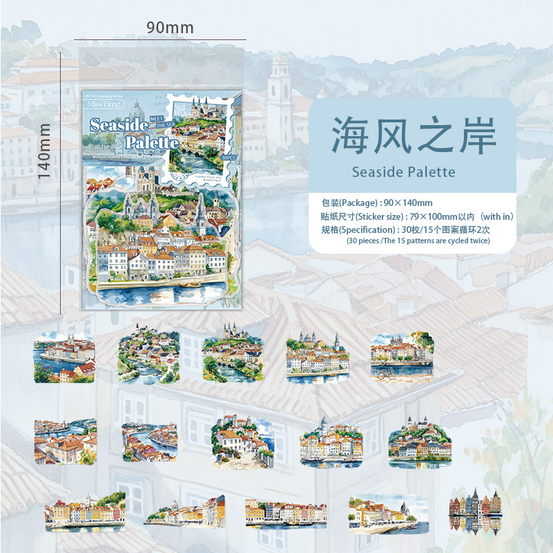 라이트컬렉션 PET 스티커팩 풍경컬렉션 시리즈 풍경조경 핸드북 장식재료 스티커 6종 30개입스토어 가기
